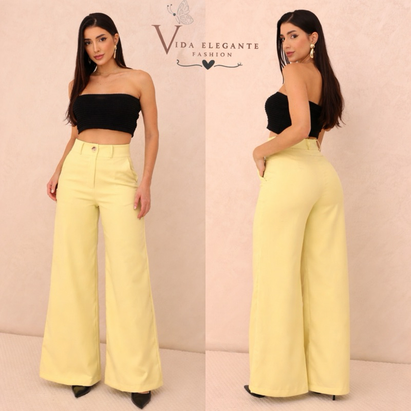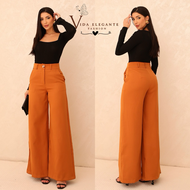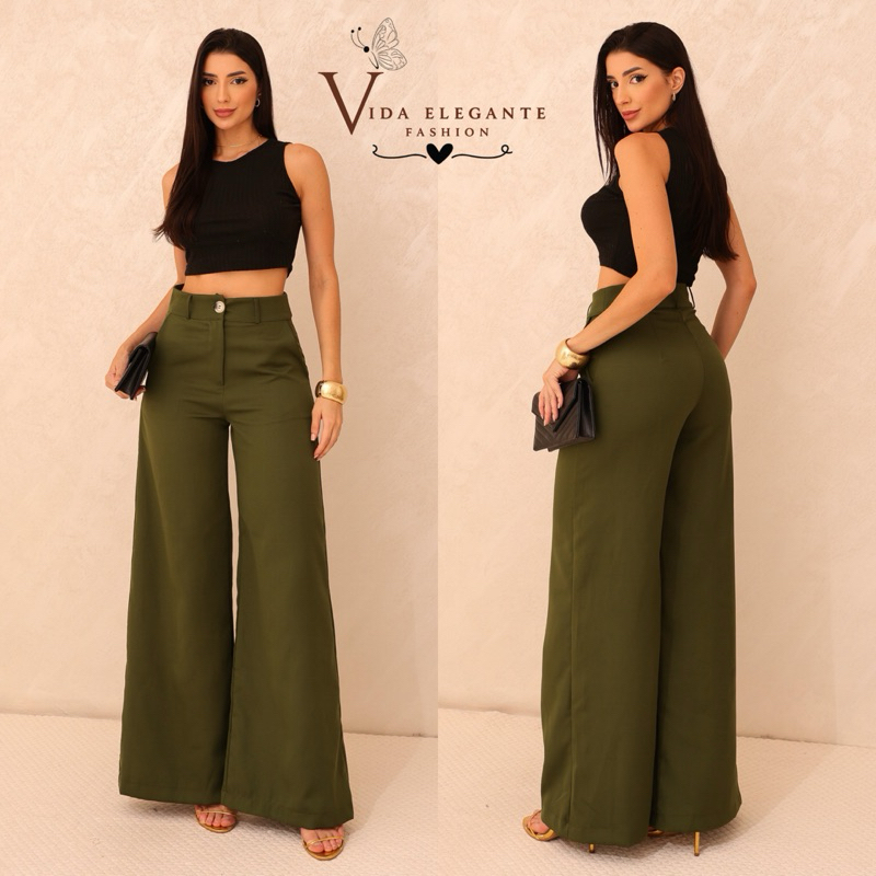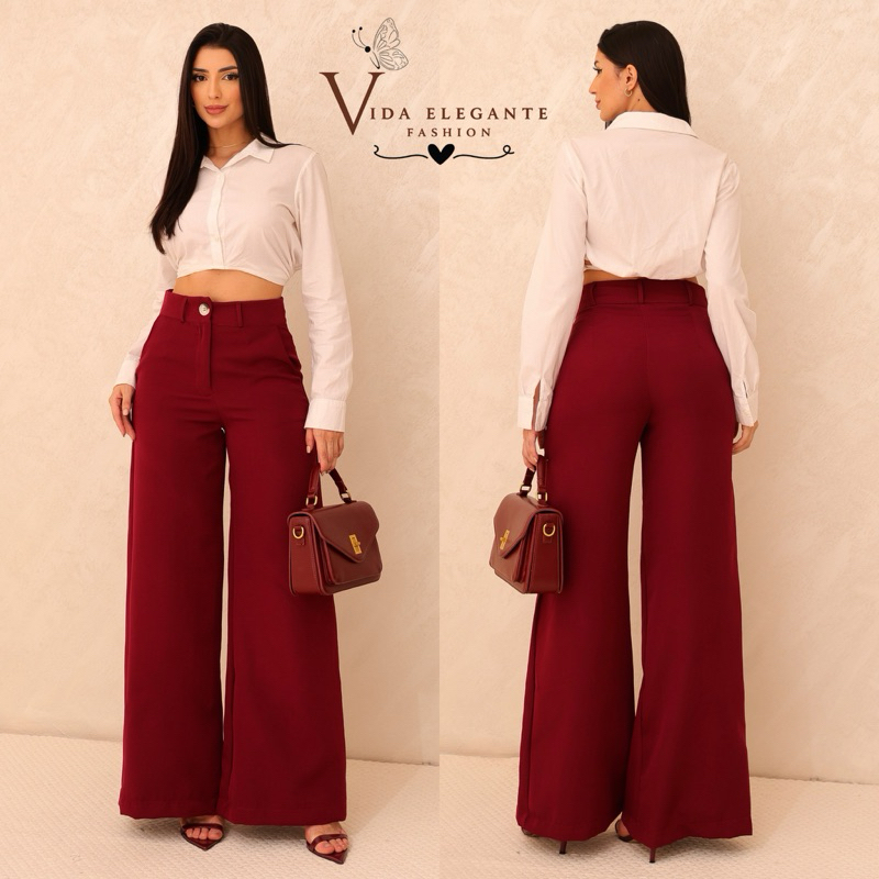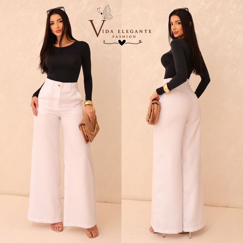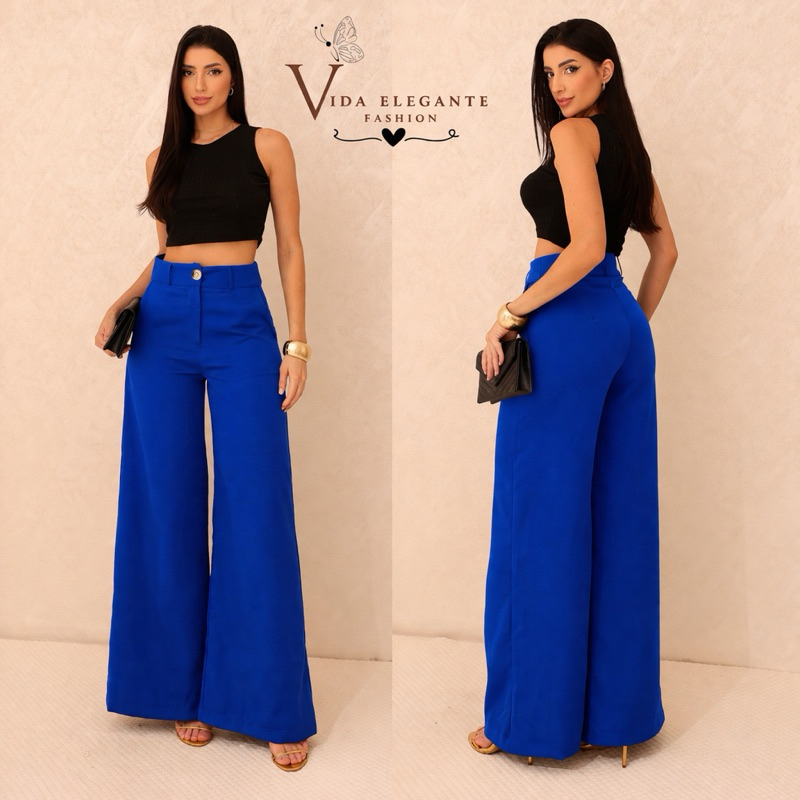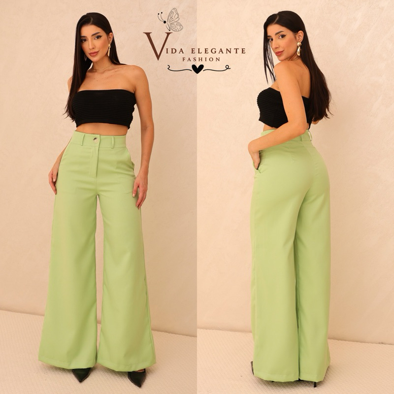 Calça social pantalona alfaiataria premium cintura alta feminina moda elegante lançamento