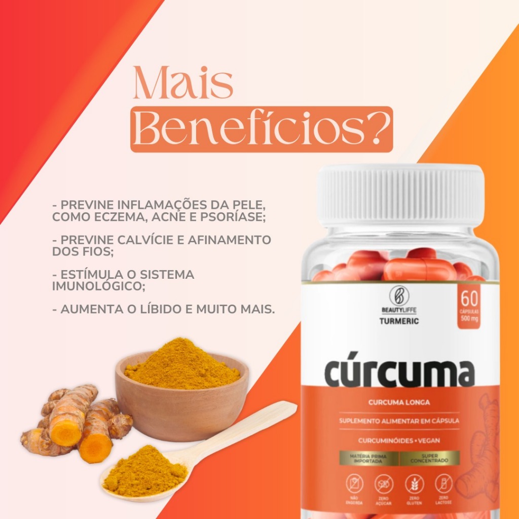 Kit 2 CURCUMA BeautyLiffe 60 Caps 500mg MATERIA PRIMA IMPORTADA PURE CURCUMINA | CURCUMA - LONGA