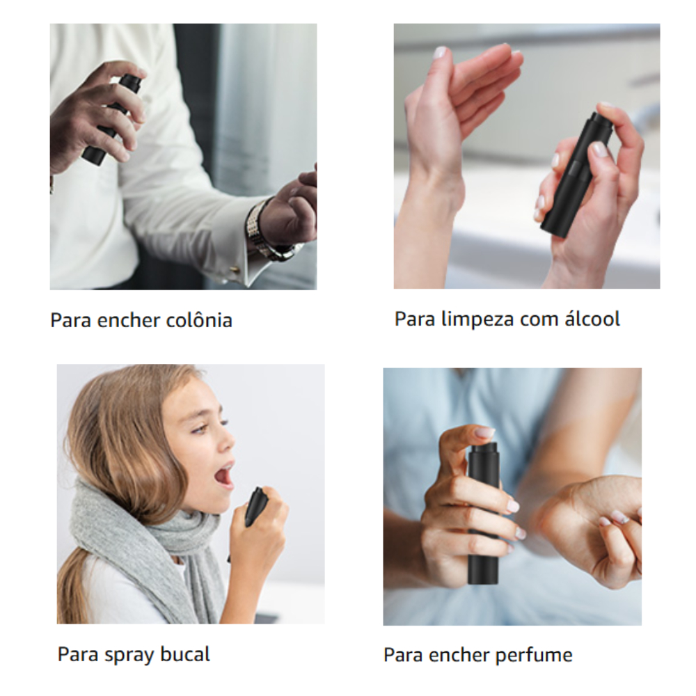 Frasco Spray de Vidro Recarregável Multiuso 8ml Sistema de Abre e Fecha Giratório Prático Funcional