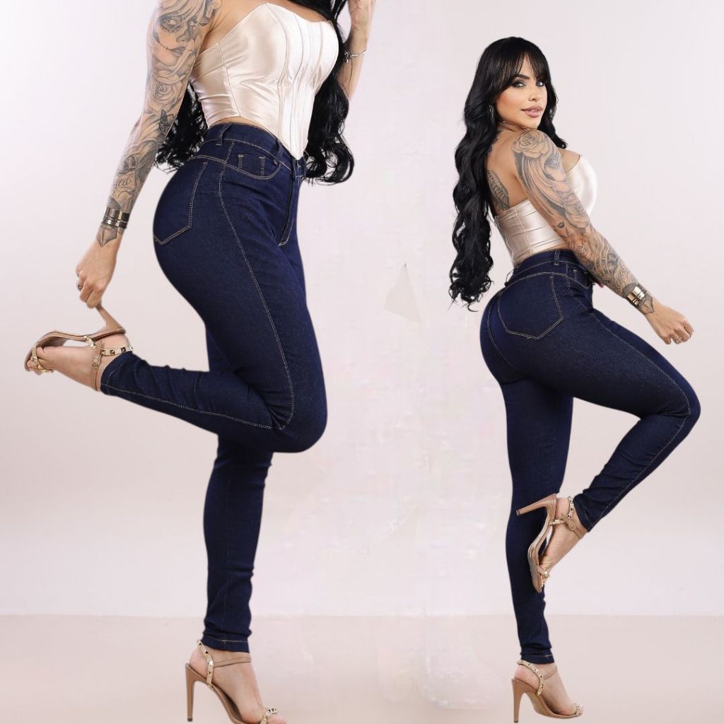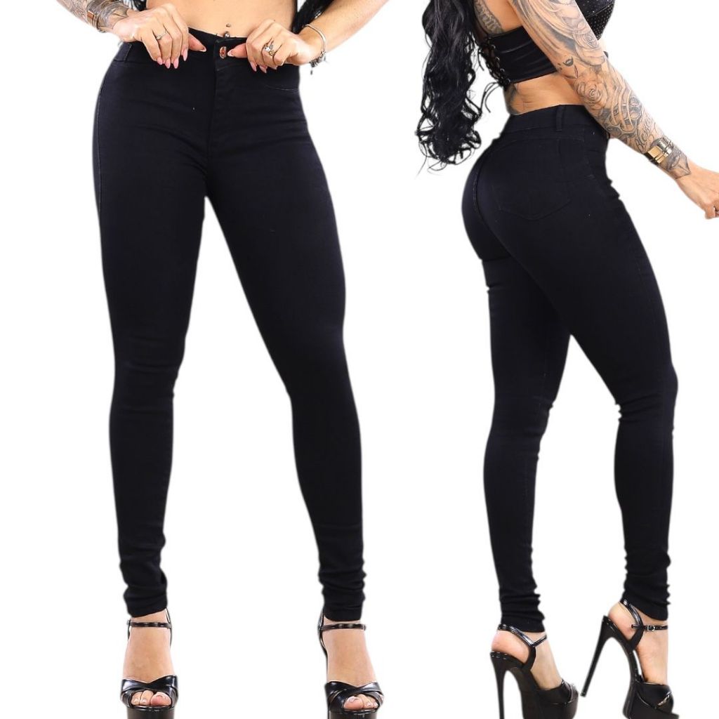 Calça Jeans Preta Skinny Com Lycra Cintura Alta Corte Do Jeans Empina Confortável Moda Feminina.