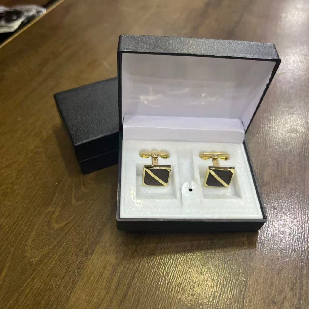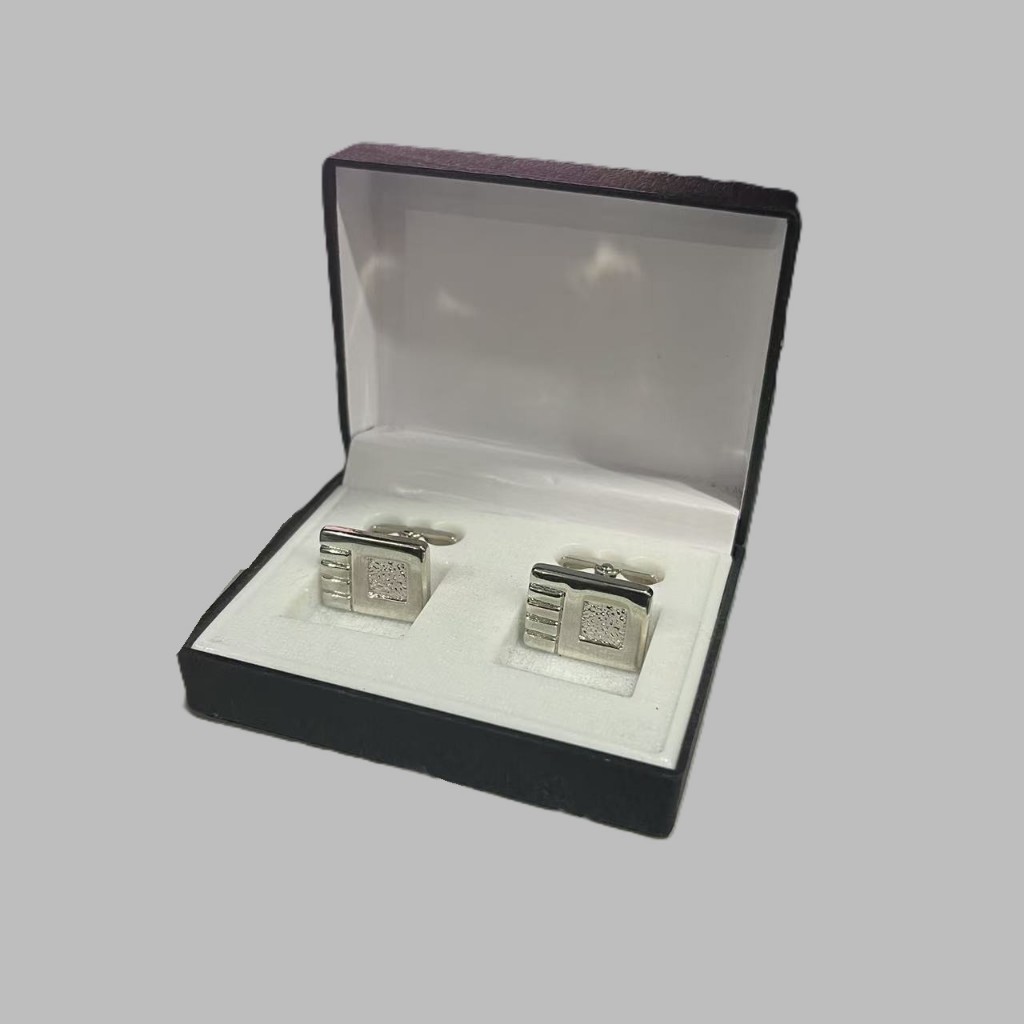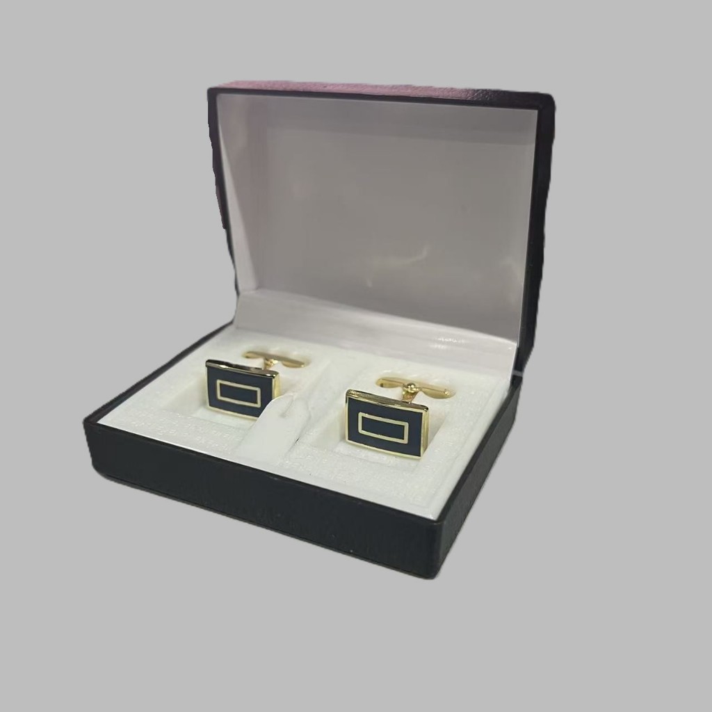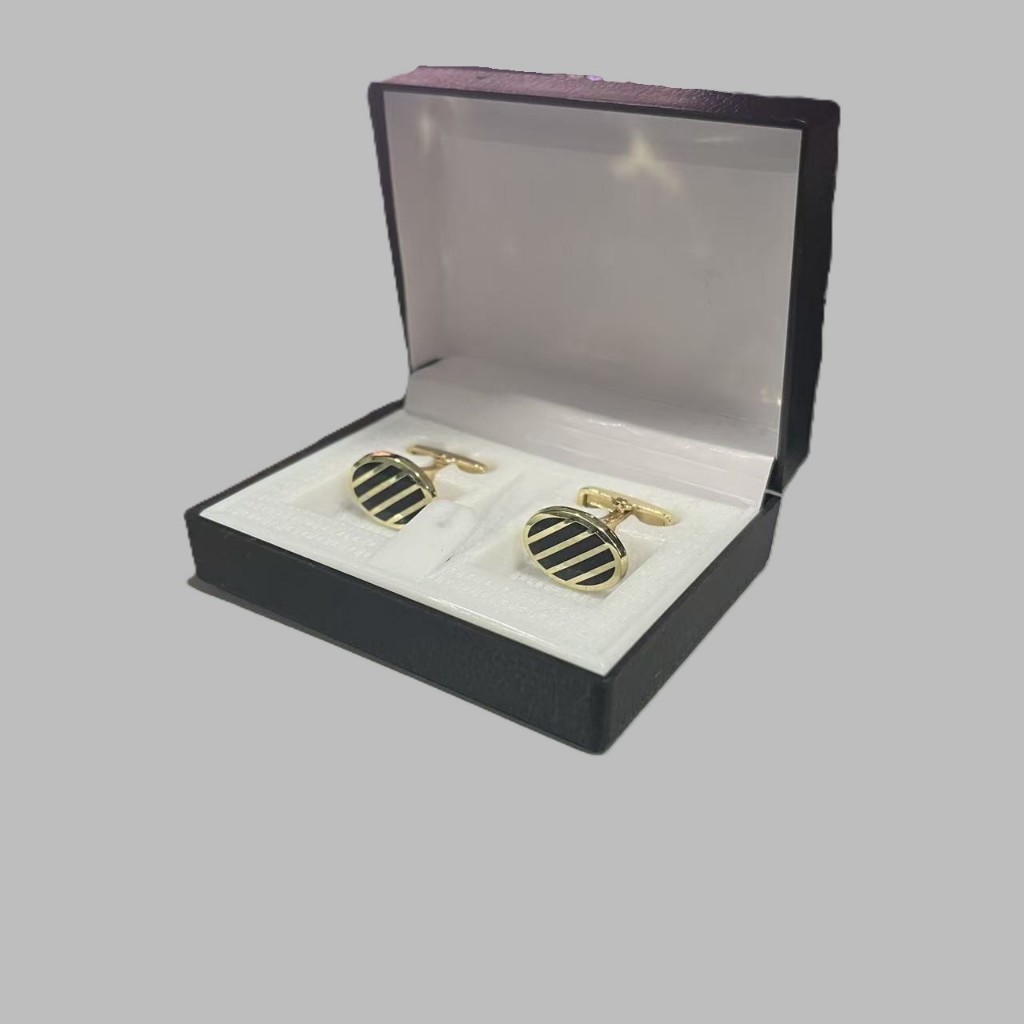 1 par de abotoaduras, acompanhado de uma caixa para abotoaduras com padrão de crocodilo.
