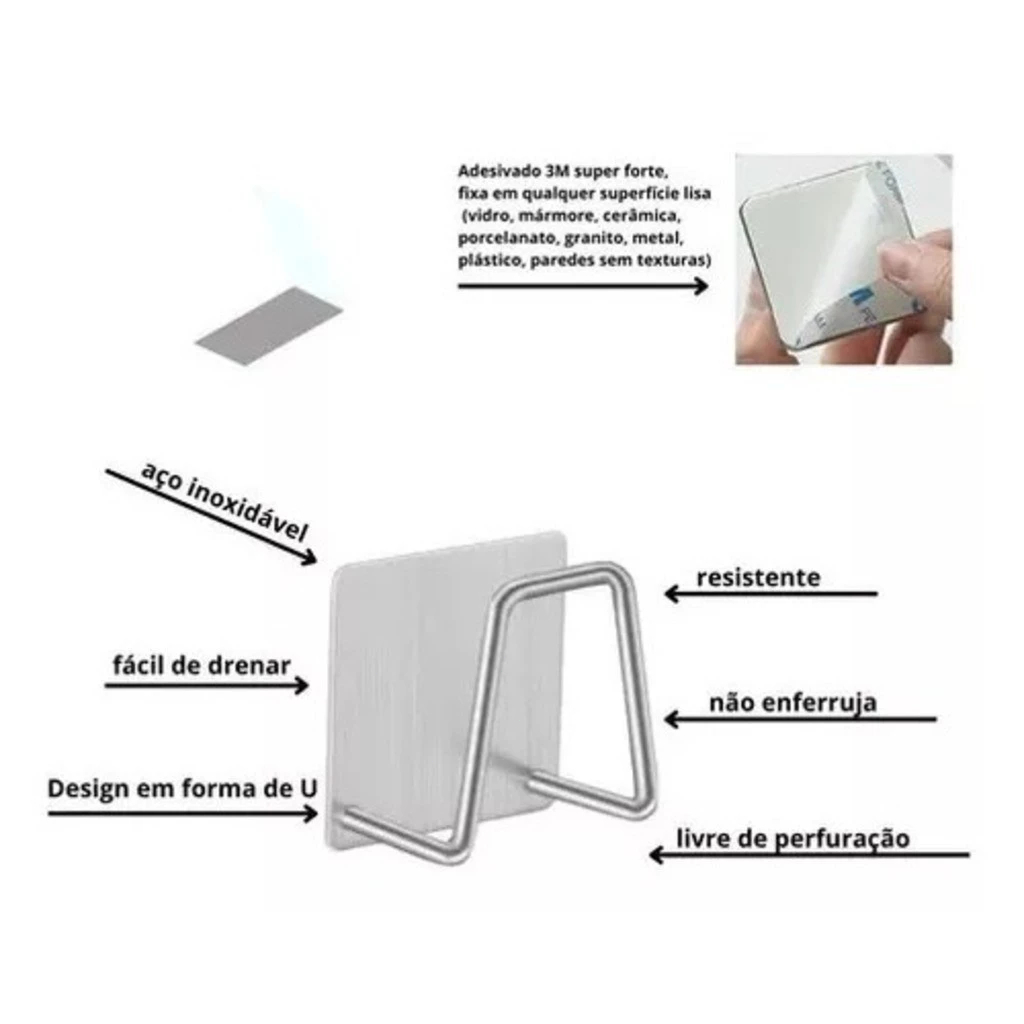 Aço Inoxidável Gancho Adesivo Multifuncional Suporte Porta Esponja para Bucha de Pia, Parede e Banheiro