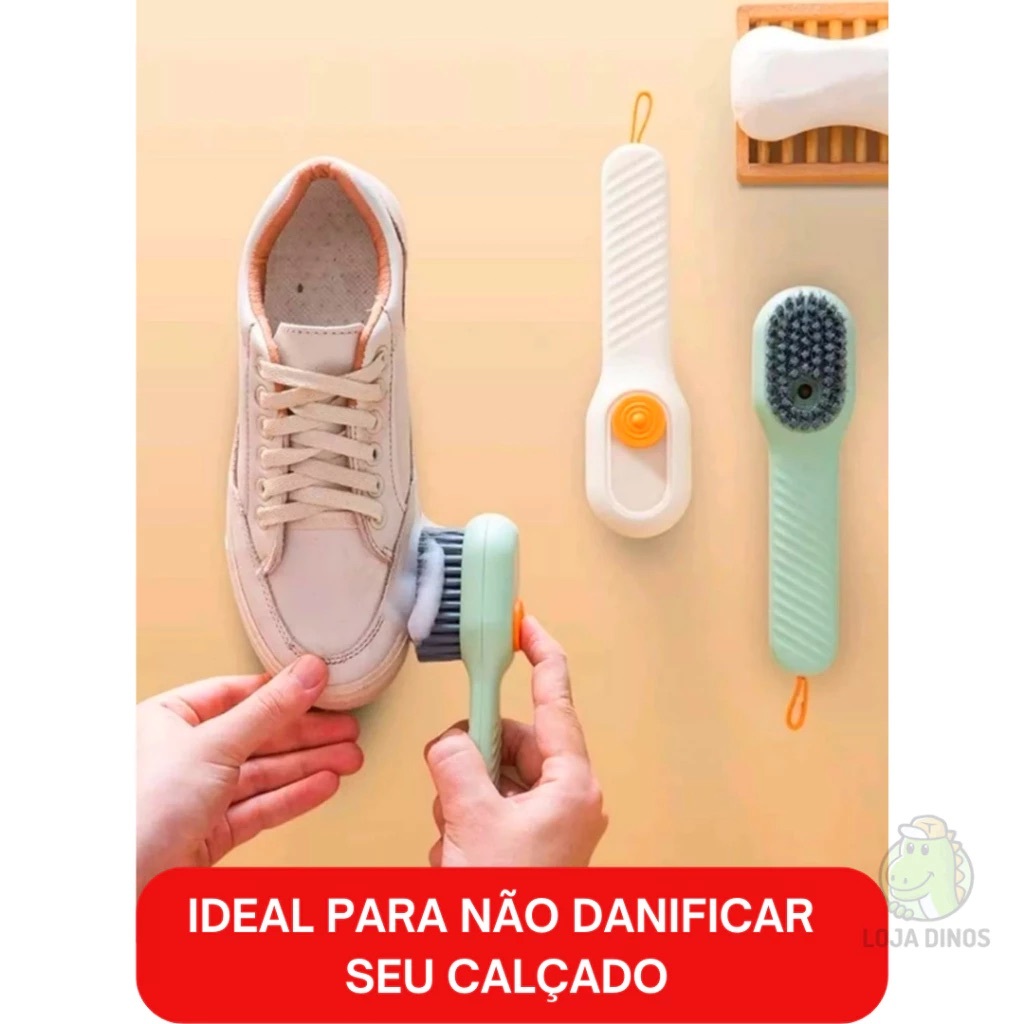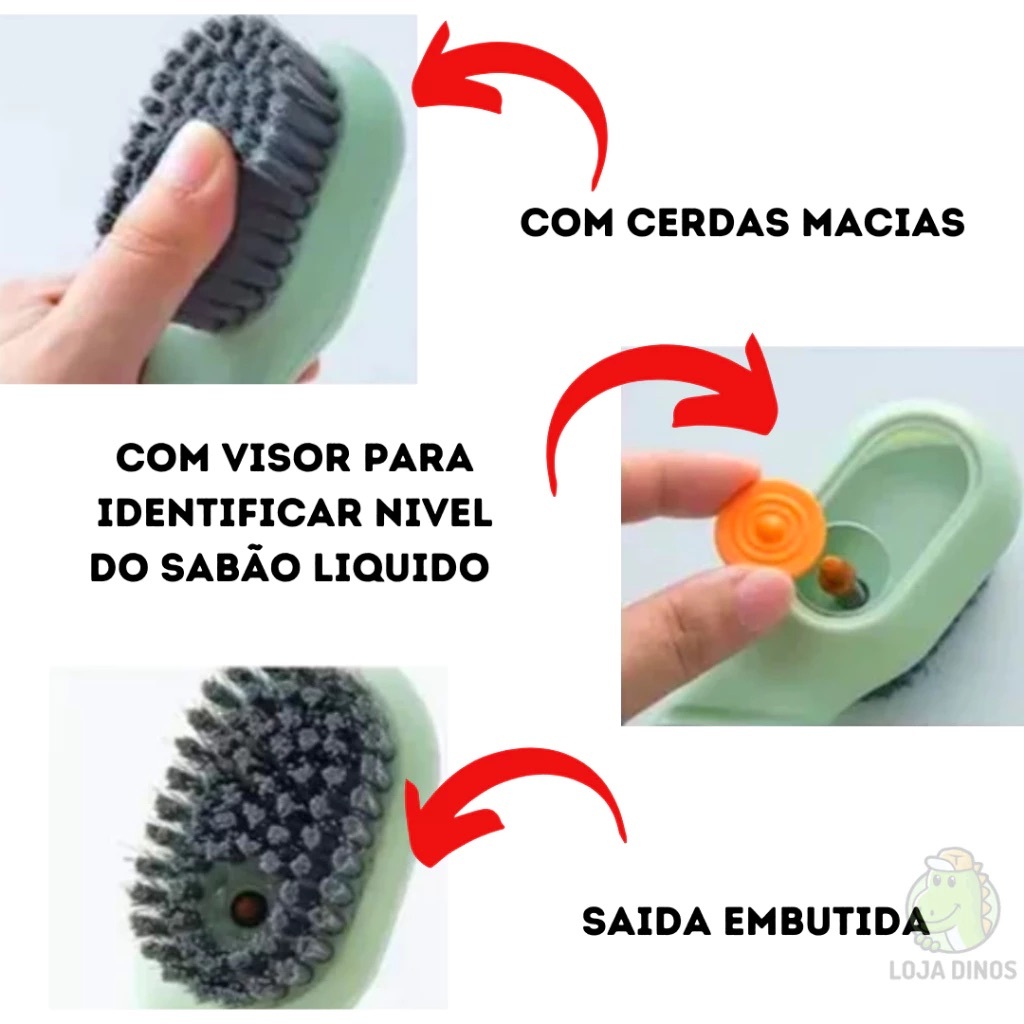 Escova Limpa Sapato Tenis Boné Roupa com Dispenser Reservatorio Sabão Liquido Sabonete