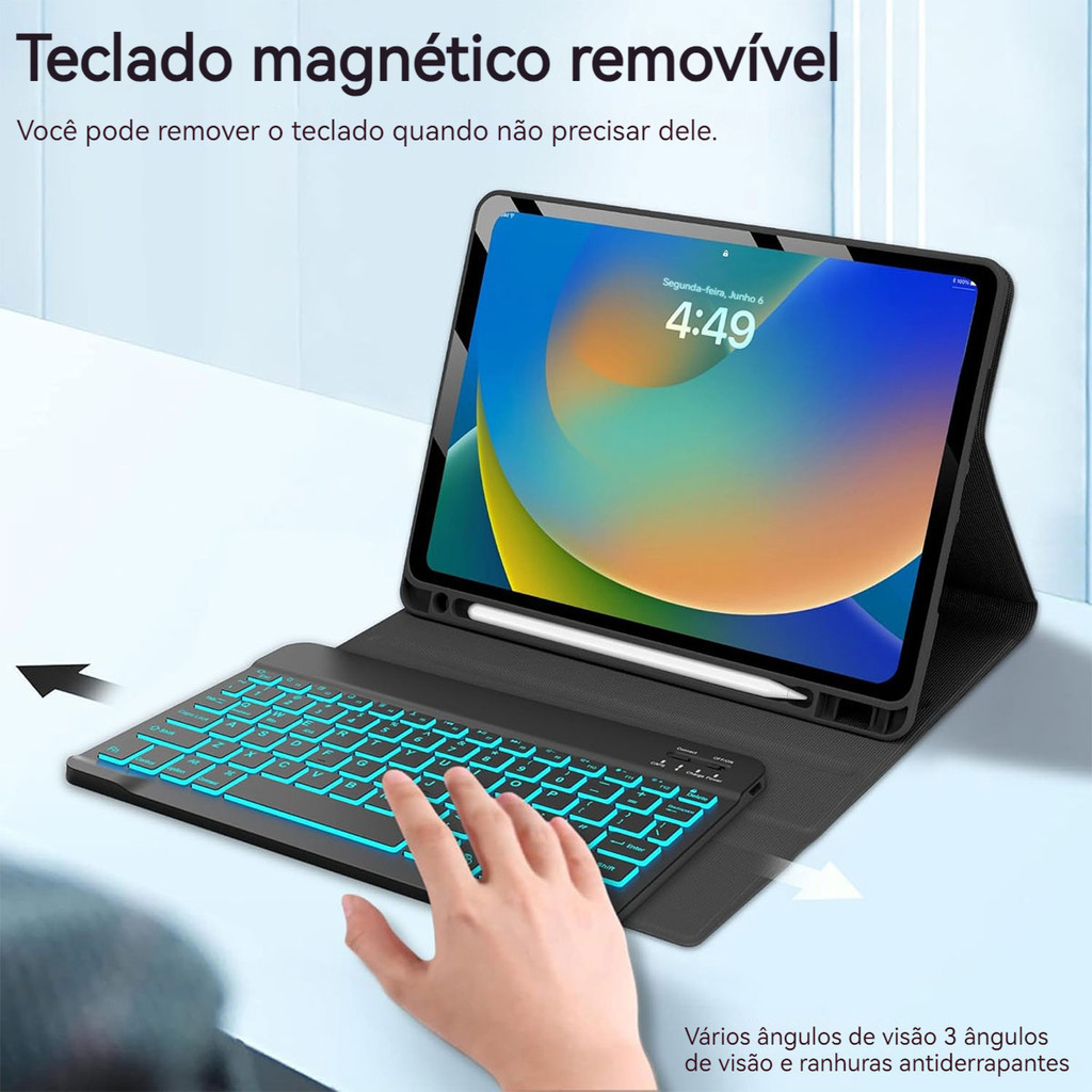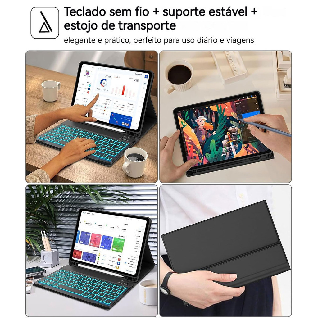 capa com teclado iluminado e mouse para Samsung Tab A7 A8 S6 lite S7 S8 S8 Ultra S7plus S8plus S7fe A9plus