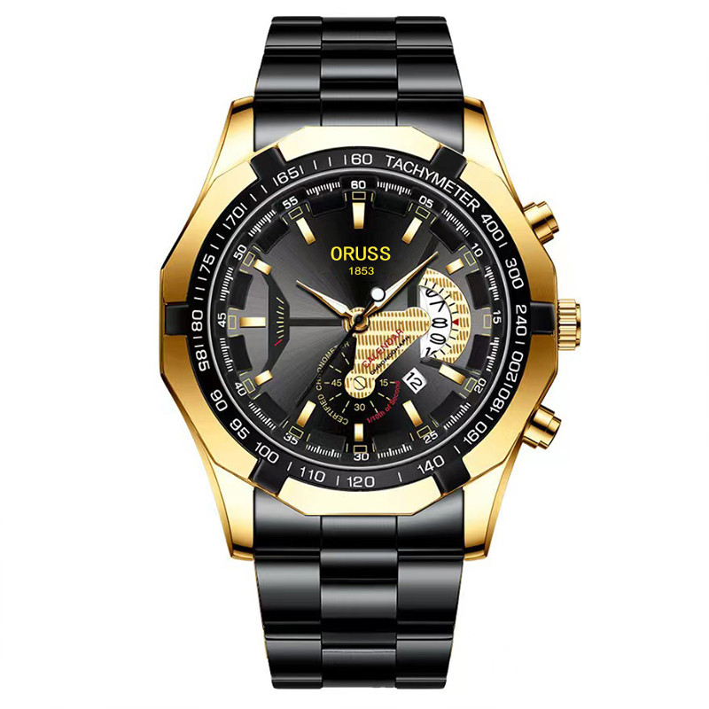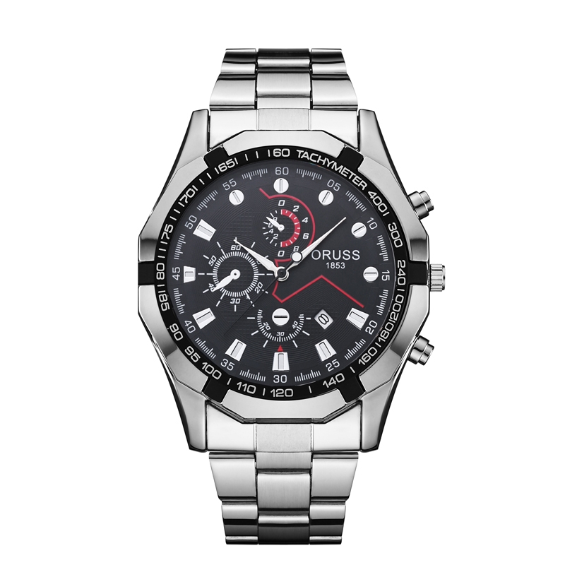 ORUSS Relógio Masculino de Aço Inoxidável à Prova D'água Negócios de Moda BQ