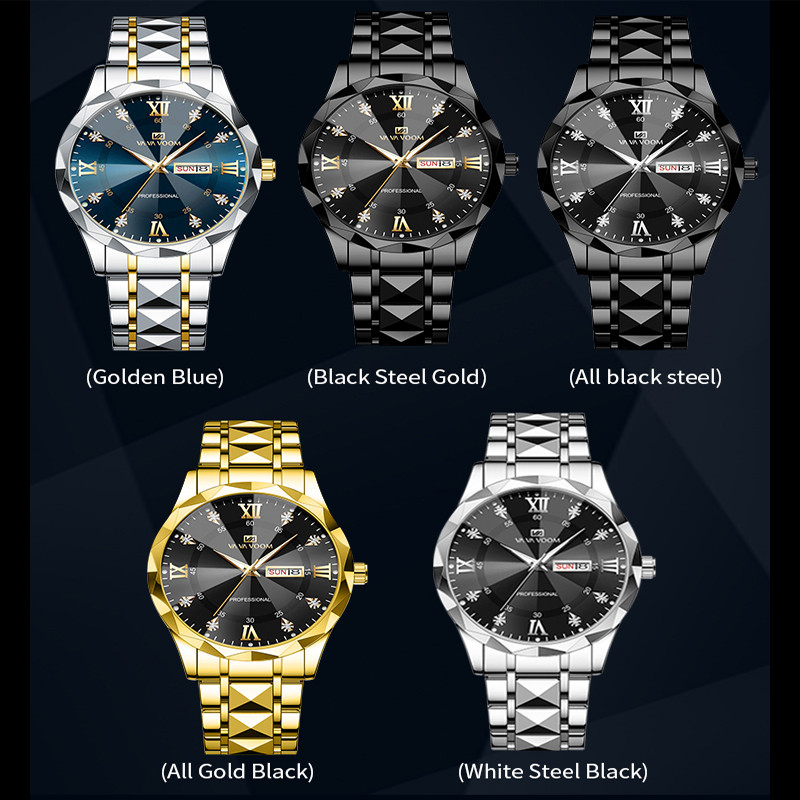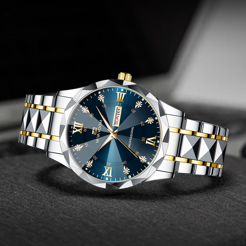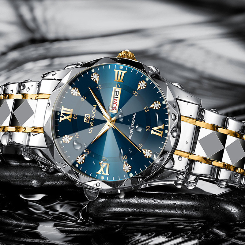 VAVA VOOM-2733 Relógio Masculino Esportivo Dourado - Resistente à Água