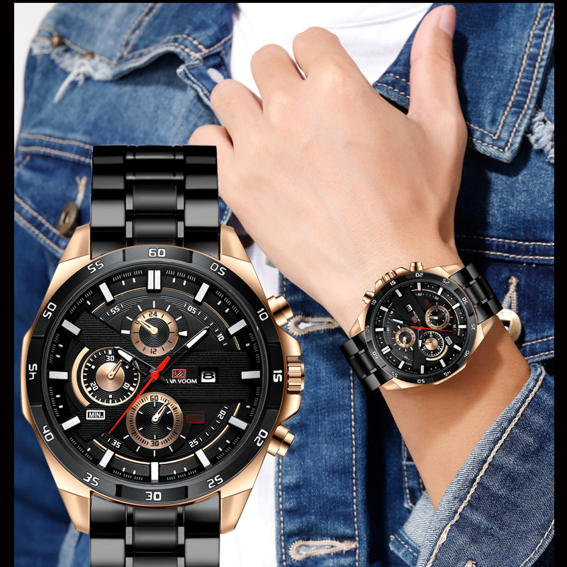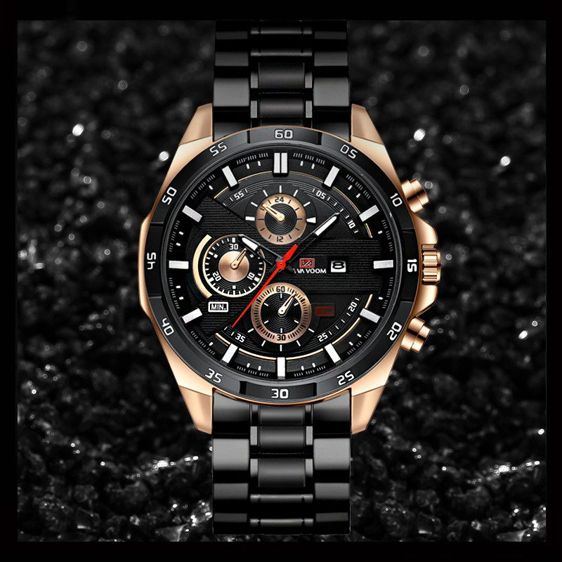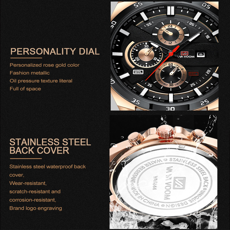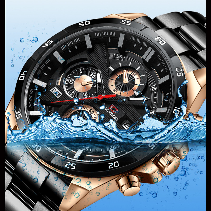 Relógio VAVA VOOM 216 Masculino - Dourado/Preto, Design Oco, Luminoso, à Prova d'Água