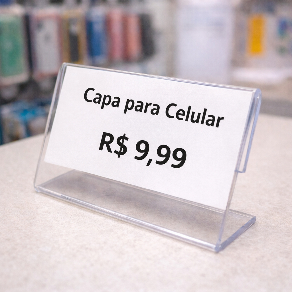 Kit Porta Etiqueta Display Mesa Acrílico Cristal 2mm 6x4