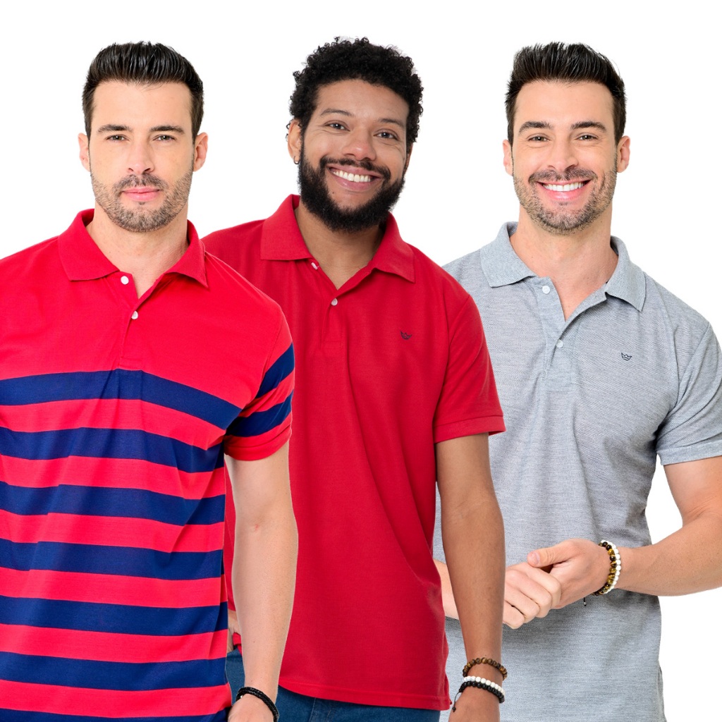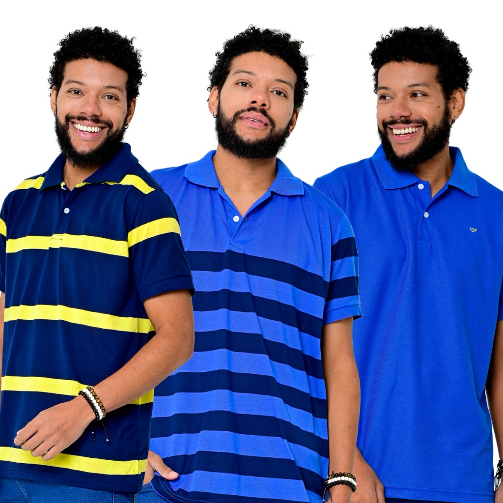 Kit 3 Camisas Gola Polo Masculina Variadas Camisaria Colombo
