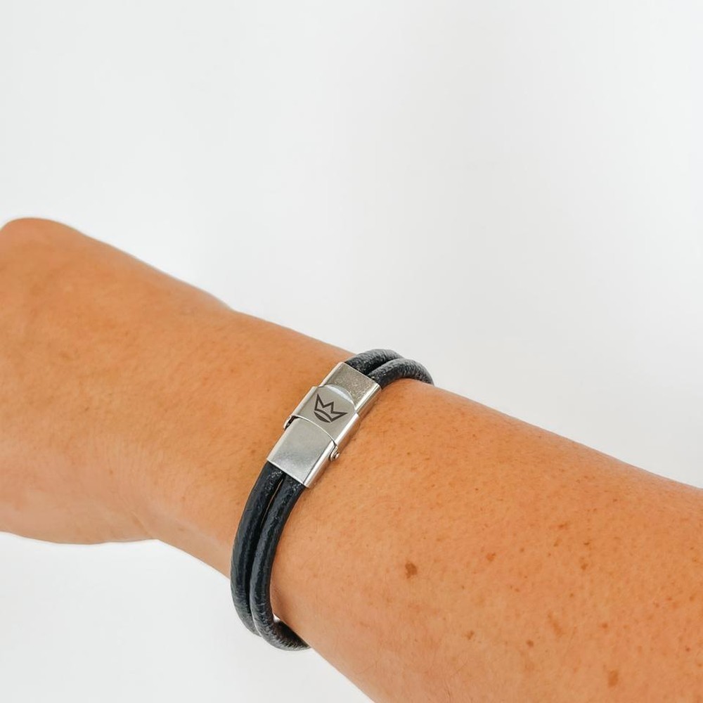 Pulseira Masculina de Couro com Fecho de Regulagem Preta
