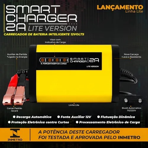 Carregador de bateria Automotivo 12V 2A Carro Moto Fonte inteligente Automático Bivolt Inmetro Smartcharger 4x4sc