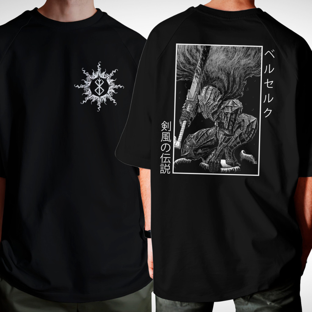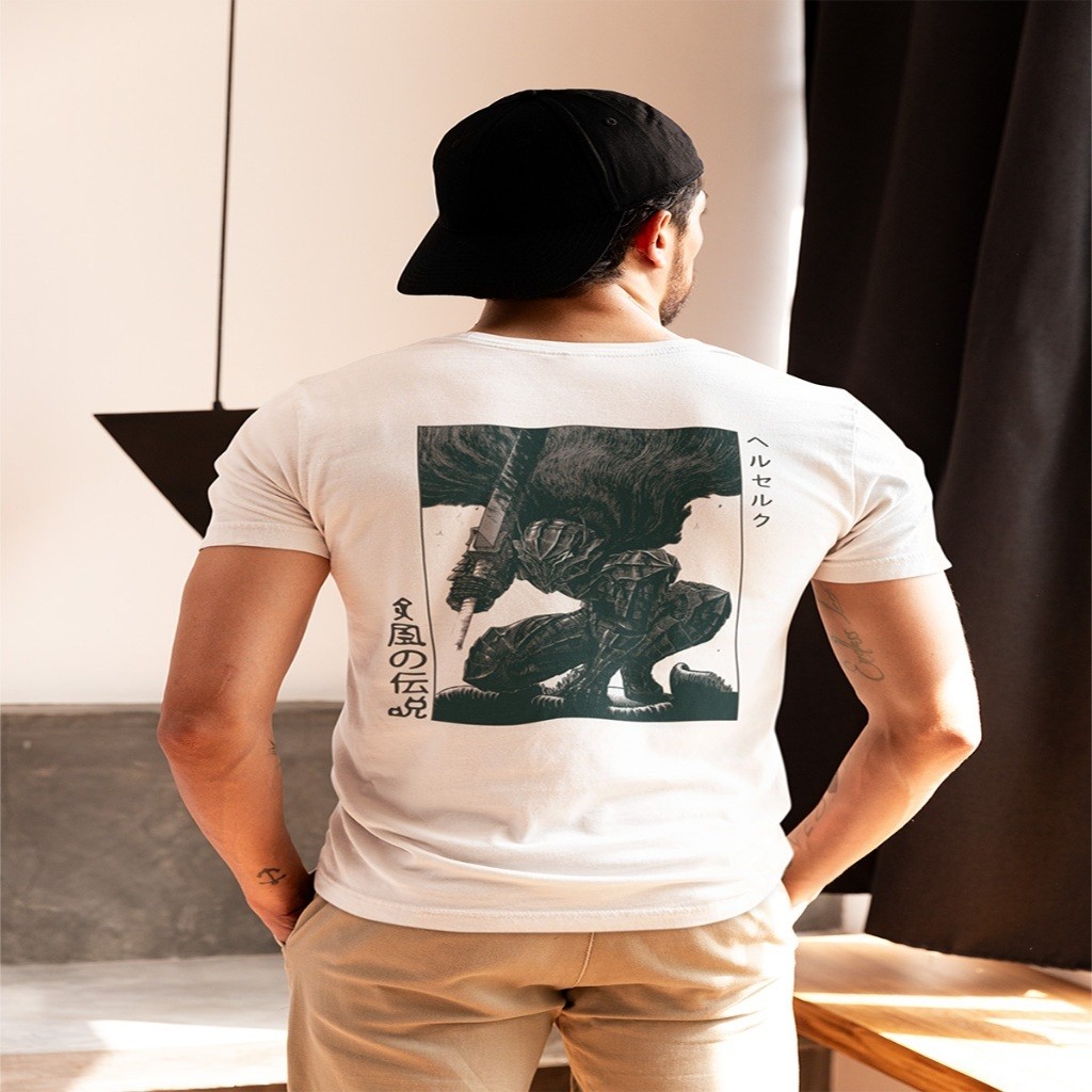 Camiseta De Anime Berserk - Guts - Algodão - Sacrificio - Frente E Costas