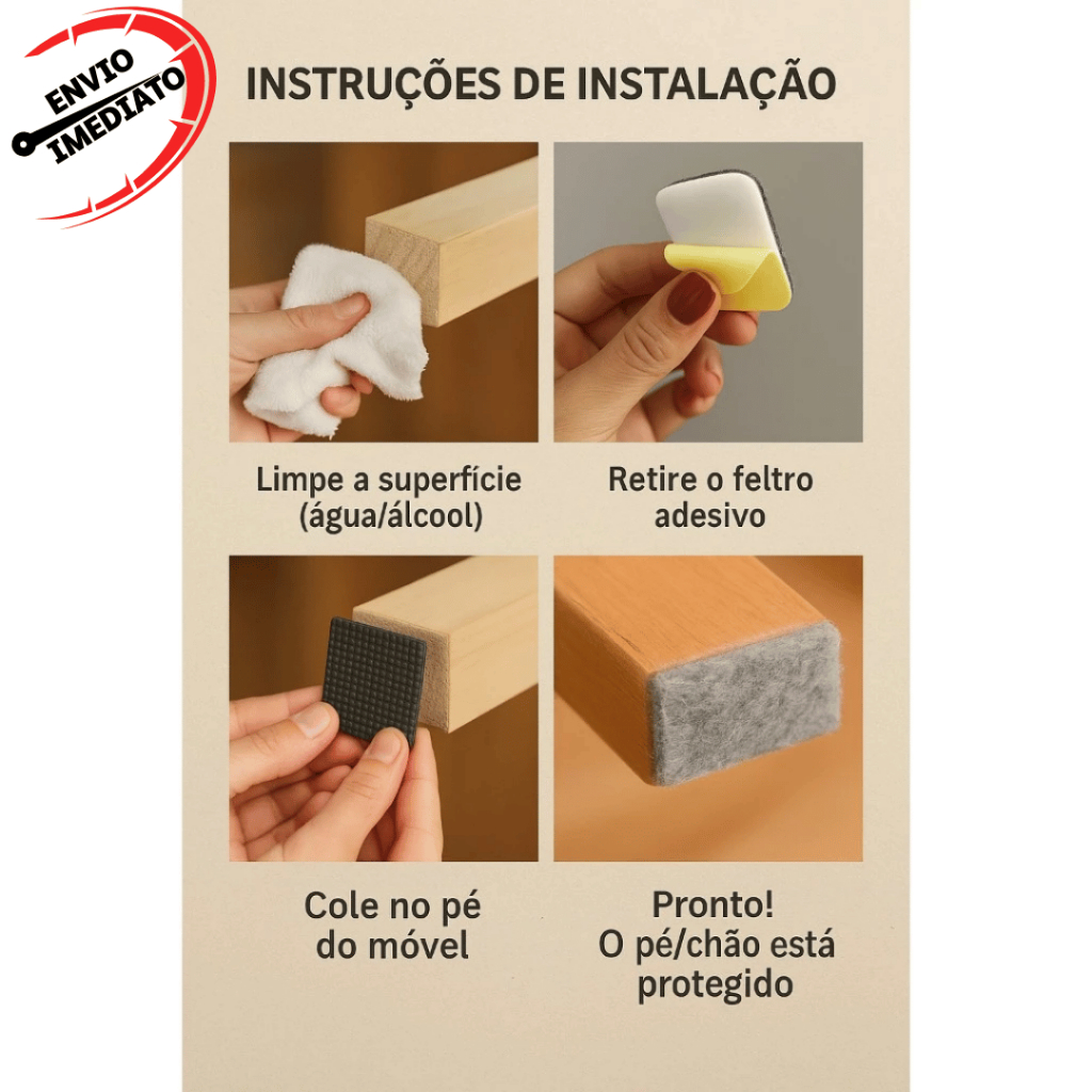 Kit Protetores Pé Feltro Protetor EVA Cadeira Sofá Mesa Auto Adesivo Redondo Quadrado