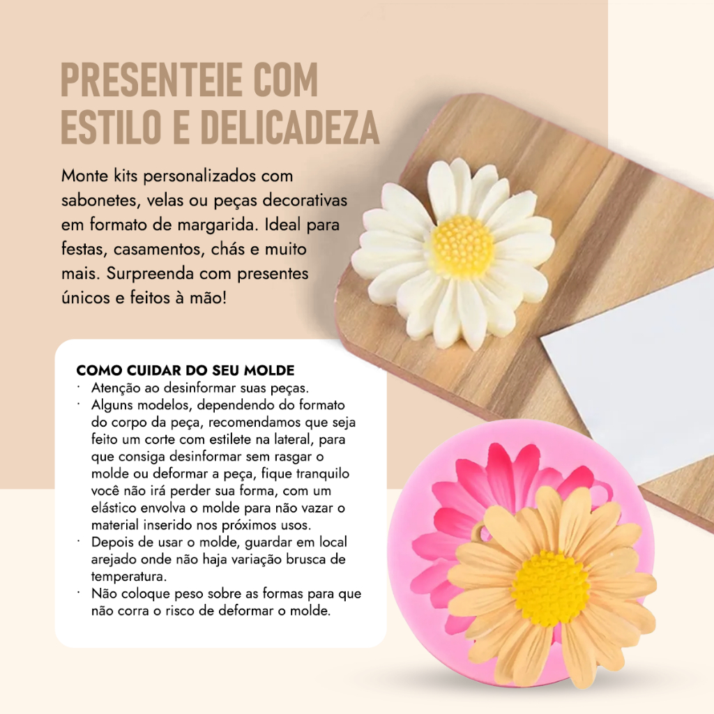 Molde Silicone Margarida Para Sabonete Resina Biscuit Vela Cor Rosa 1 Cavidade