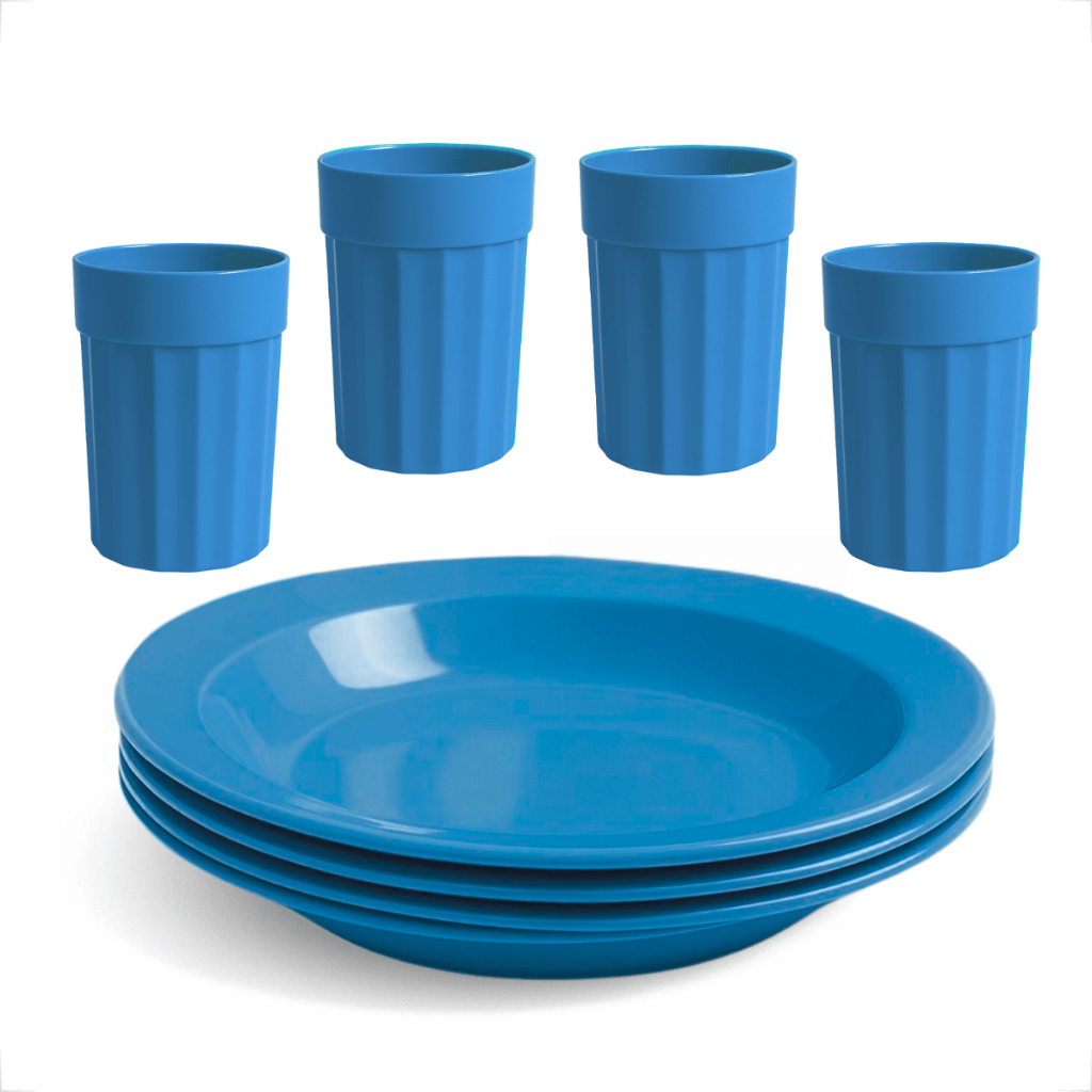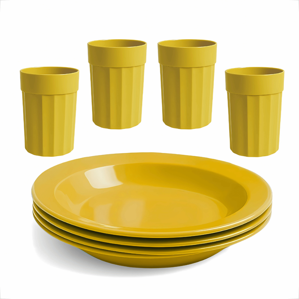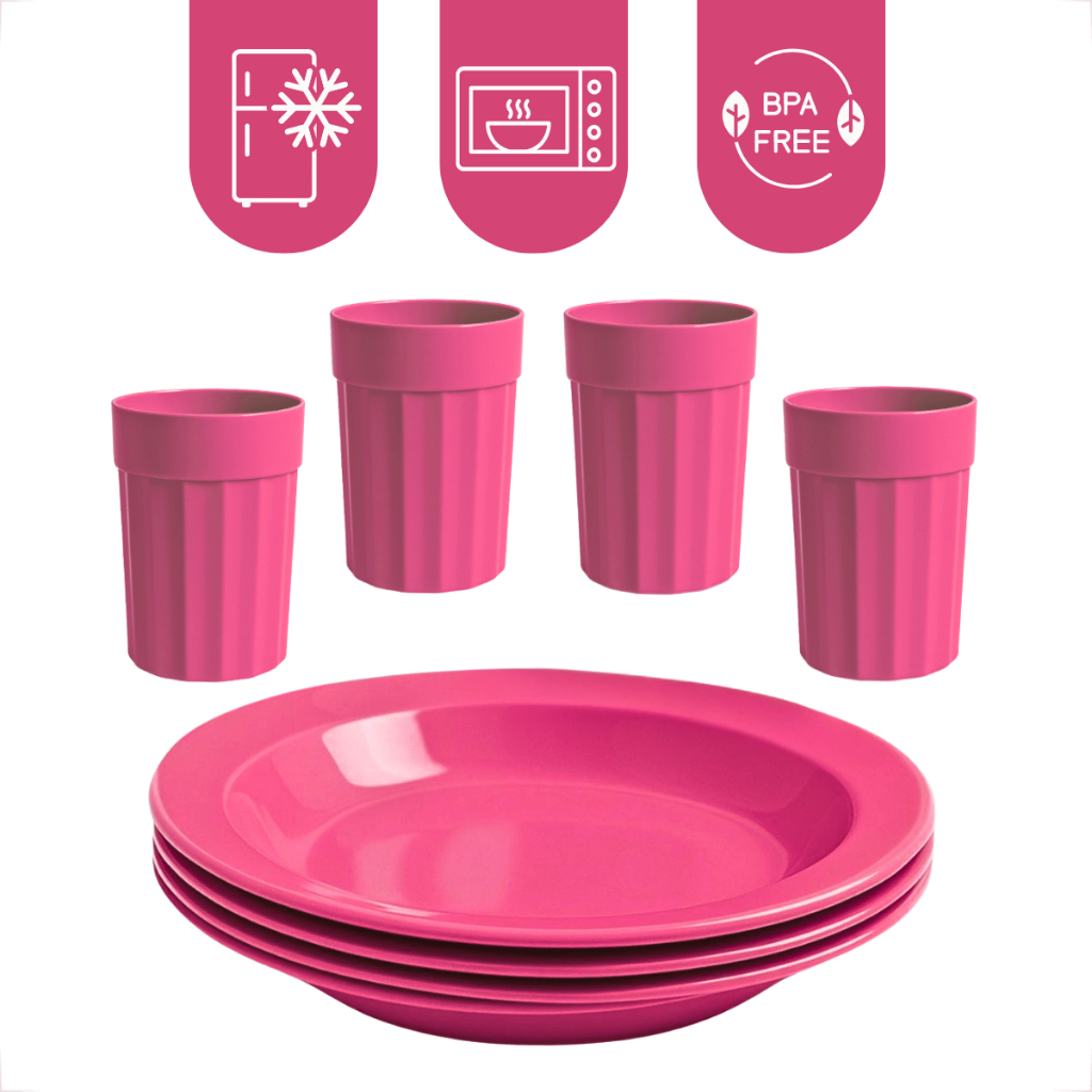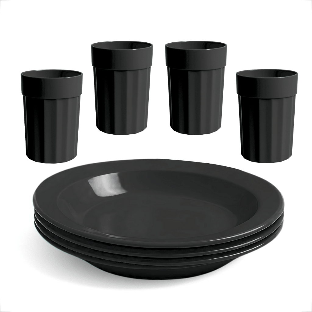 Kit Completo com Copos 350ml e Pratos Reutilizável e Durável 4 Copos e 4 Pratos