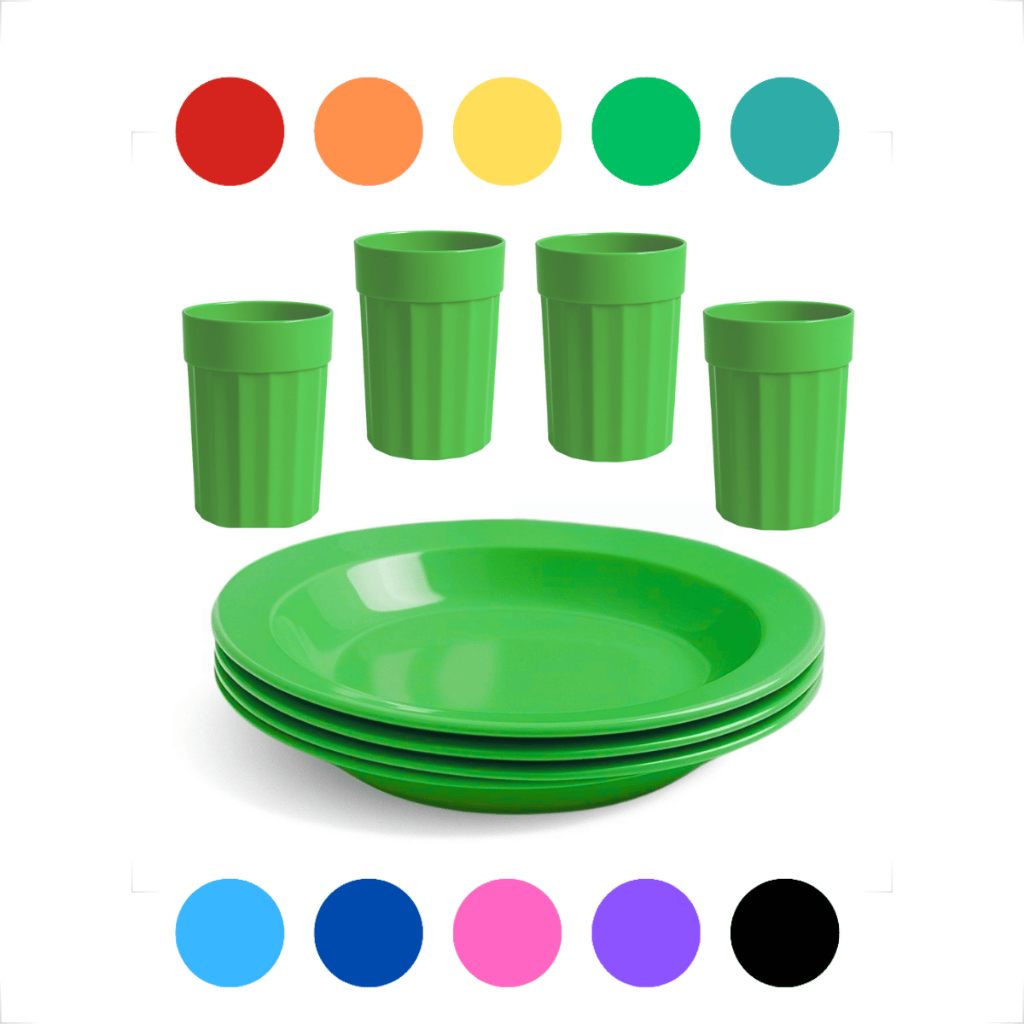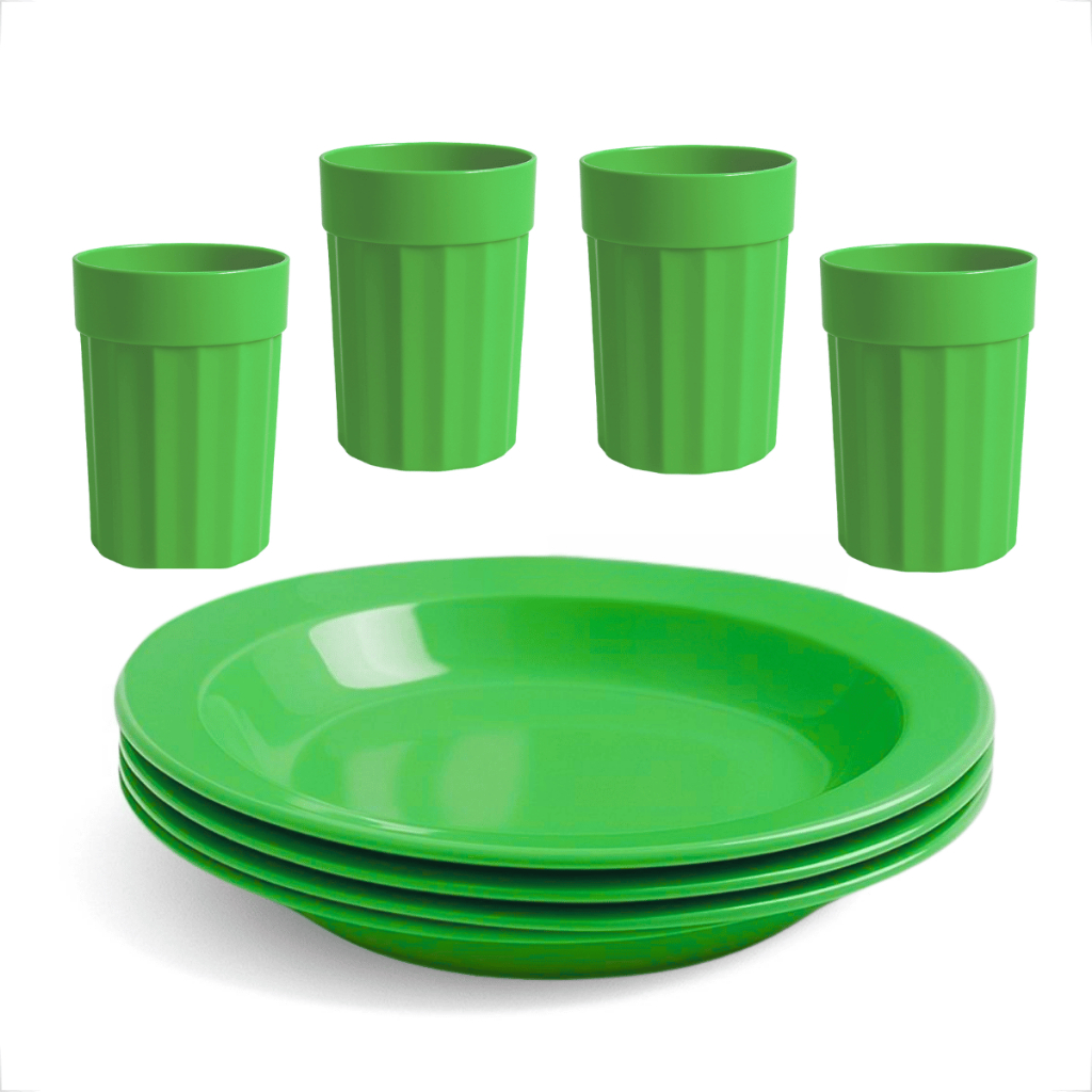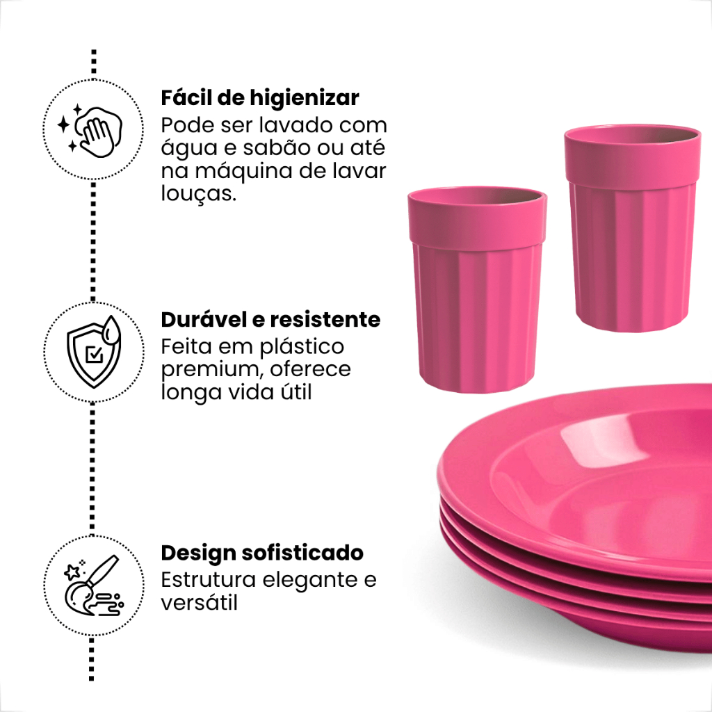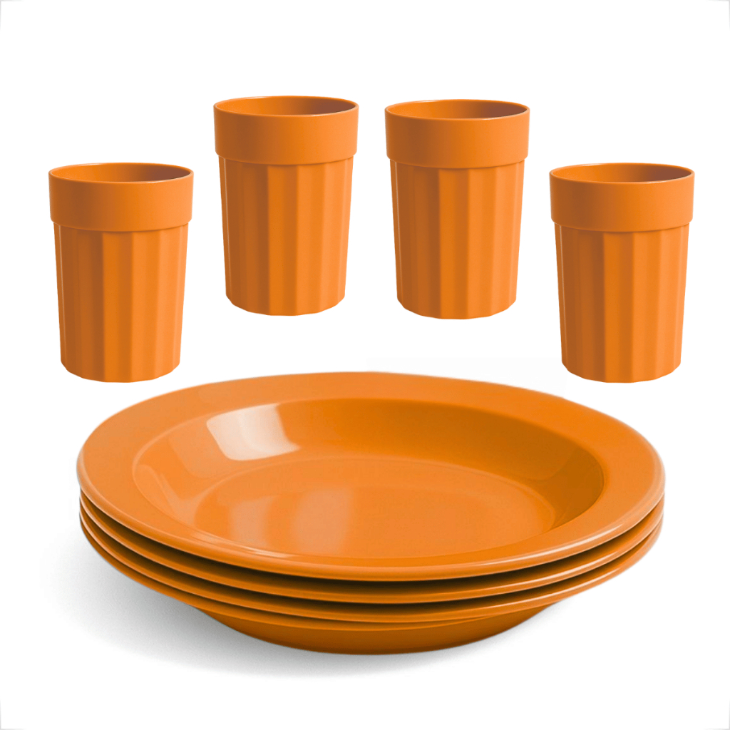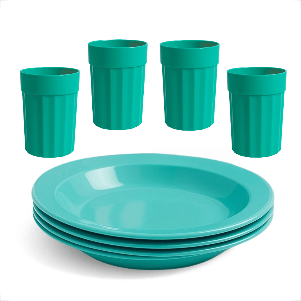 Kit Completo com Copos 350ml e Pratos Reutilizável e Durável 4 Copos e 4 Pratos