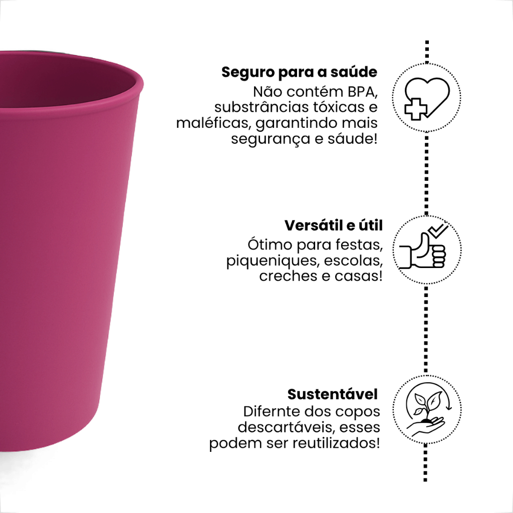 Kit De 25 Copos Plástico Reutilizáveis 200ML Para Bebidas Festa Escola Merenda Almoço Resistente