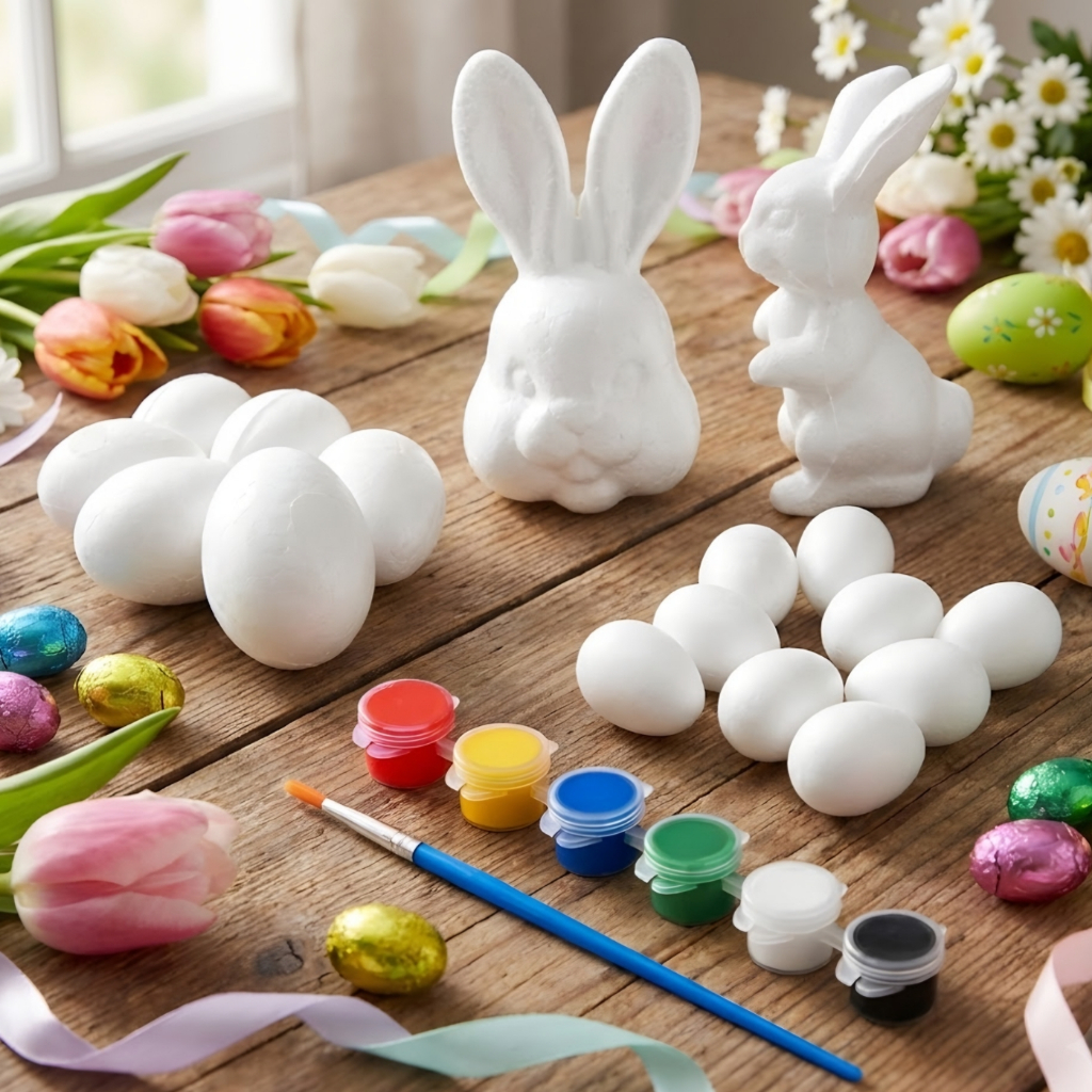 kit páscoa p/ colorir c/ tintas e pinceis 4 modelos de isopor pintura, infantil, atividade criativa