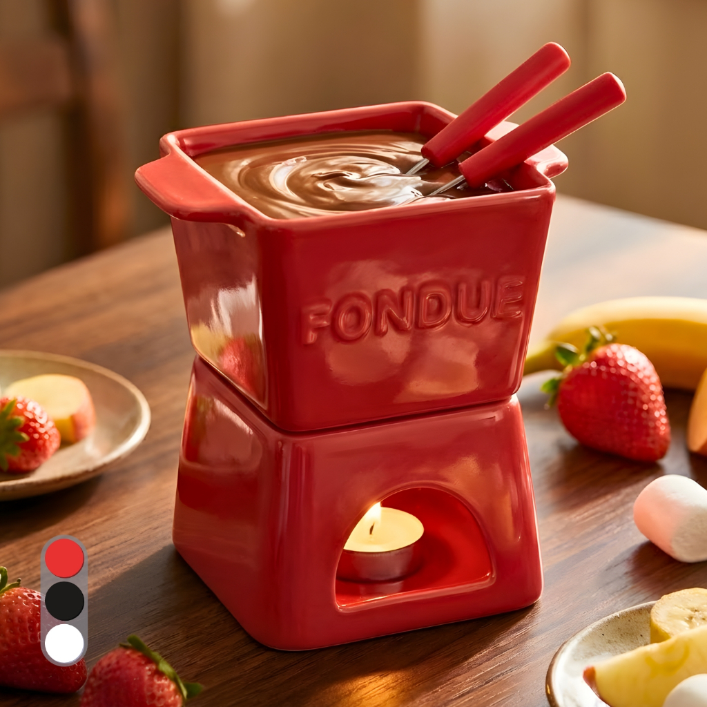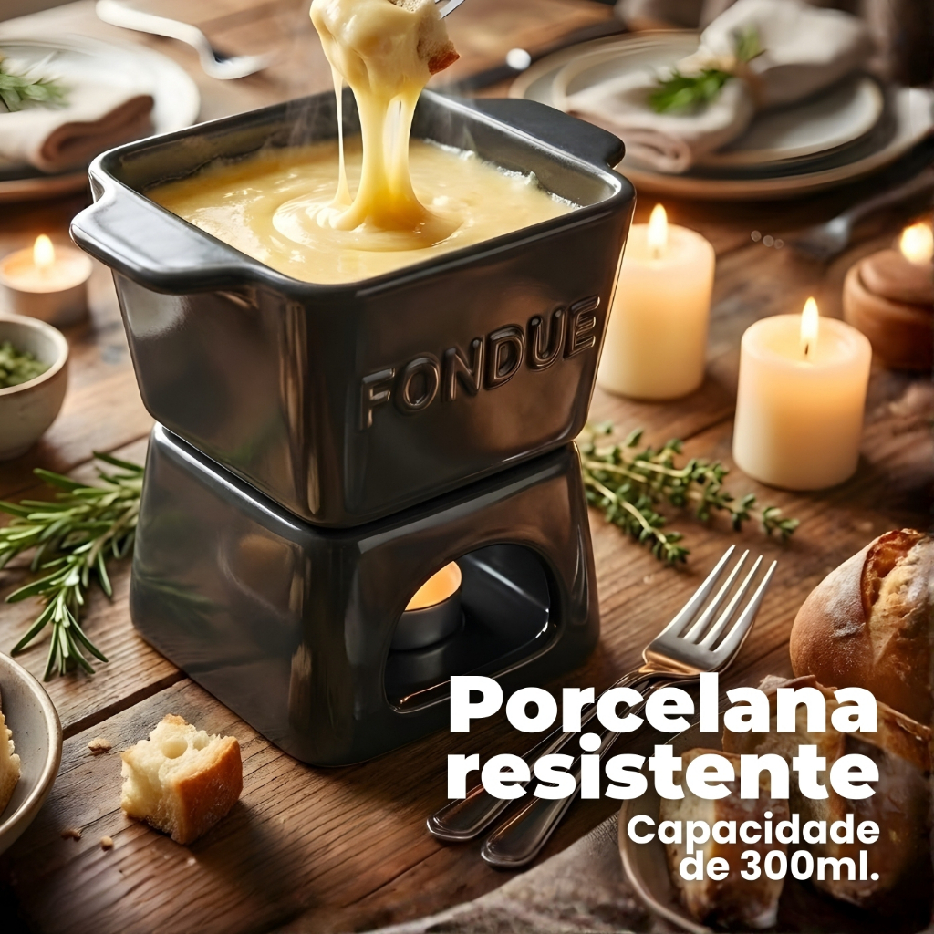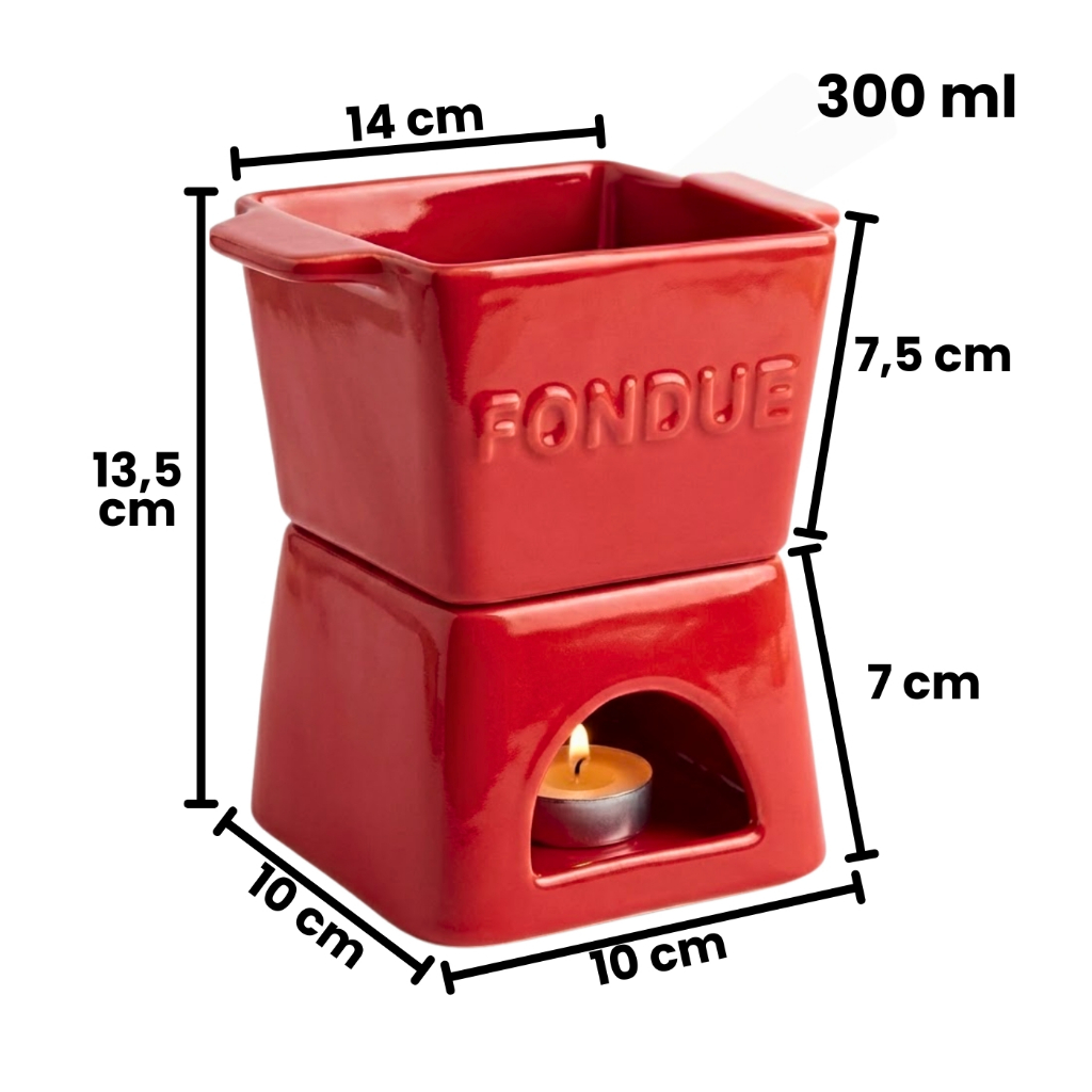 Aparelho de Fondue 6 peças, p/ 2 pessoas, com vela, portátil, 3 cores, elegante, resistente 300ml