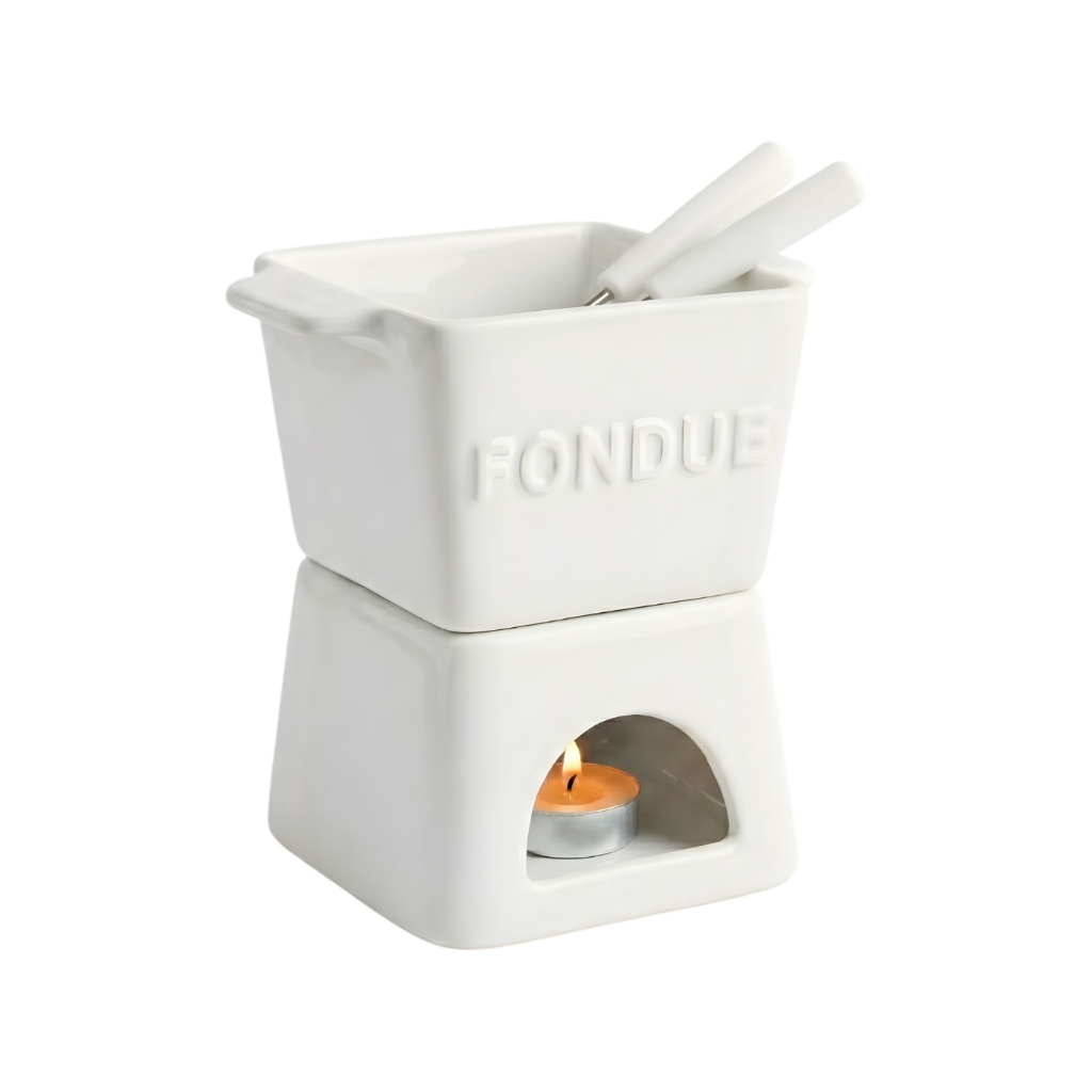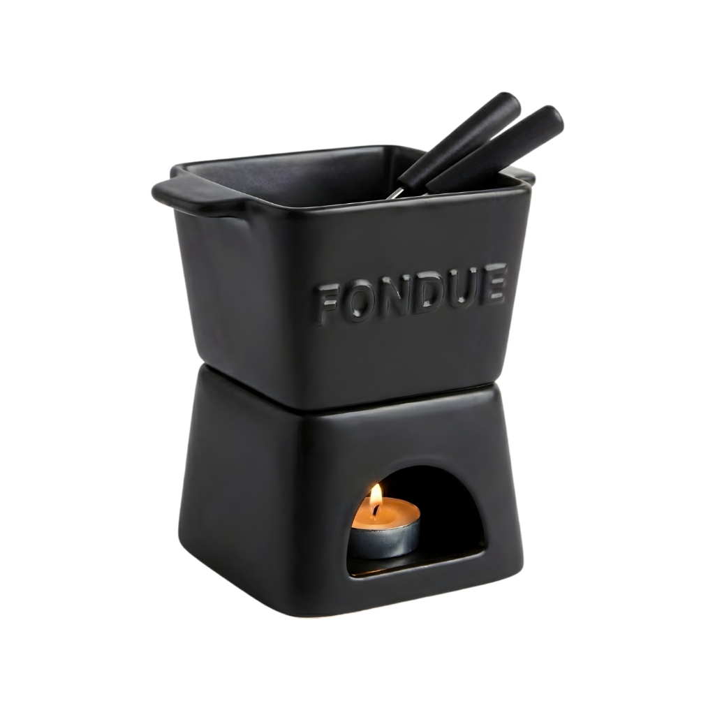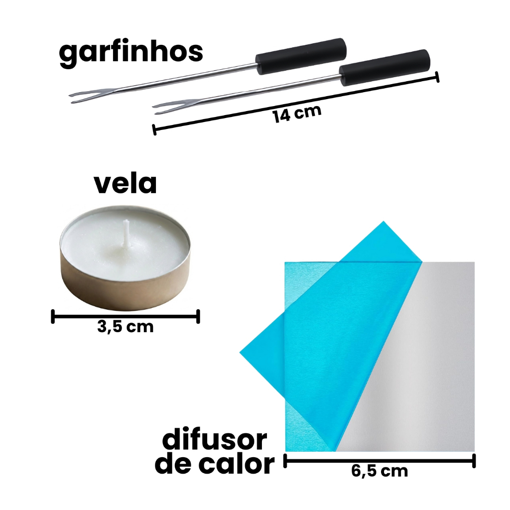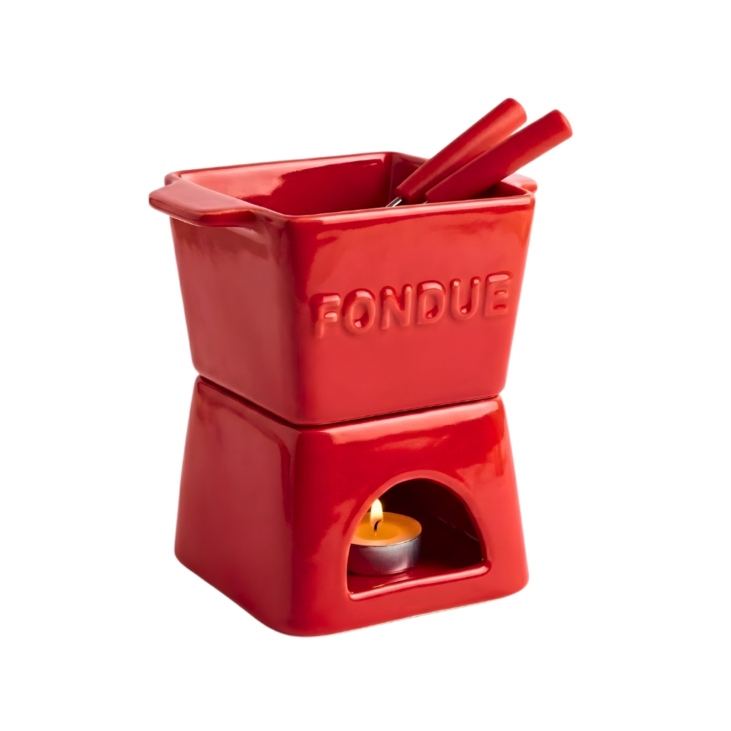 Aparelho de Fondue 6 peças, p/ 2 pessoas, com vela, portátil, 3 cores, elegante, resistente 300ml