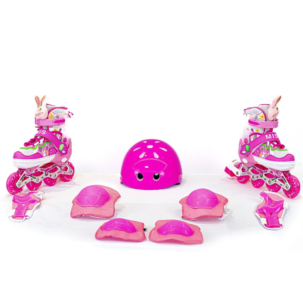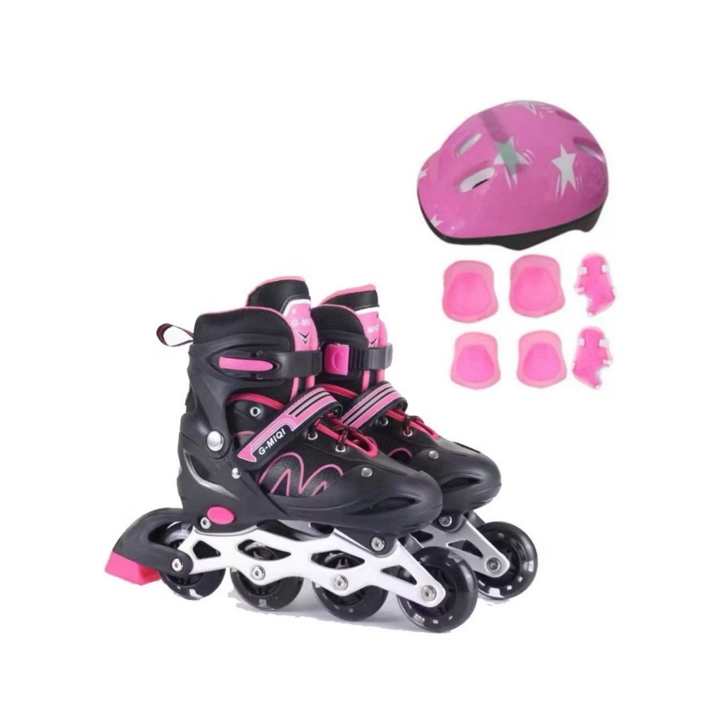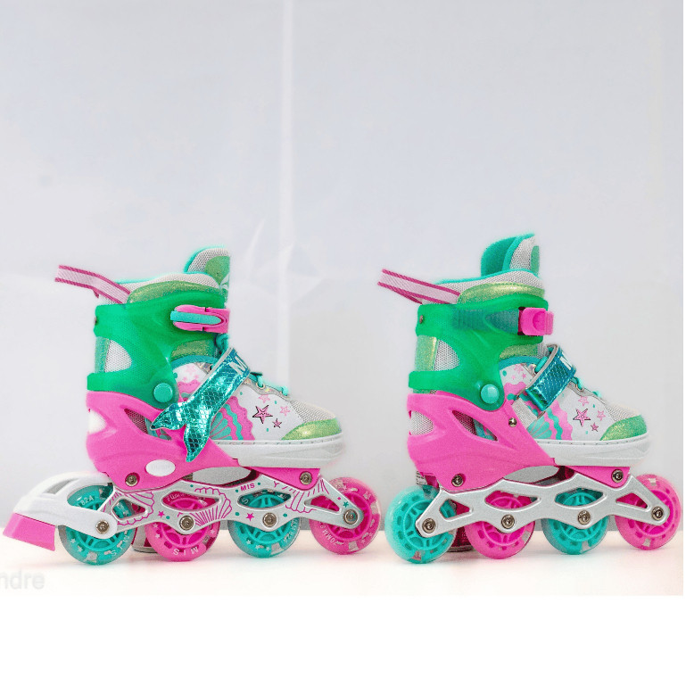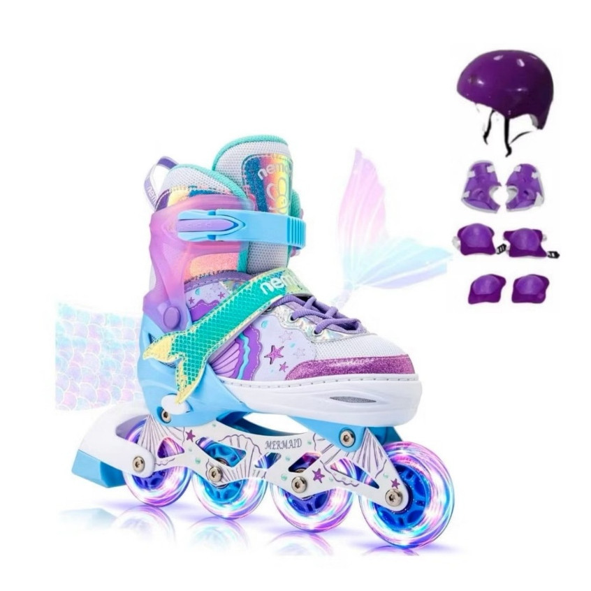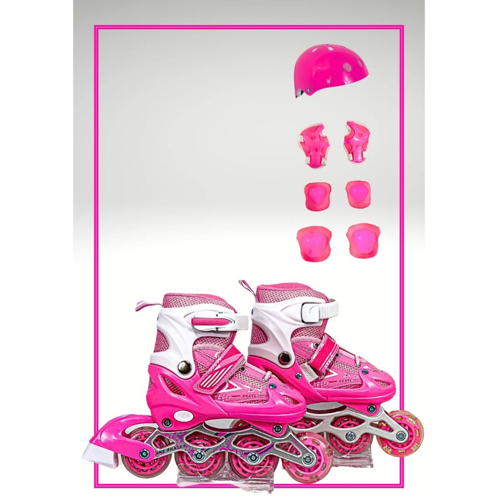 Patins inline infantil ajustável com luzes LED, com ou sem kit de proteção, em várias cores e tamanhos disponiveis