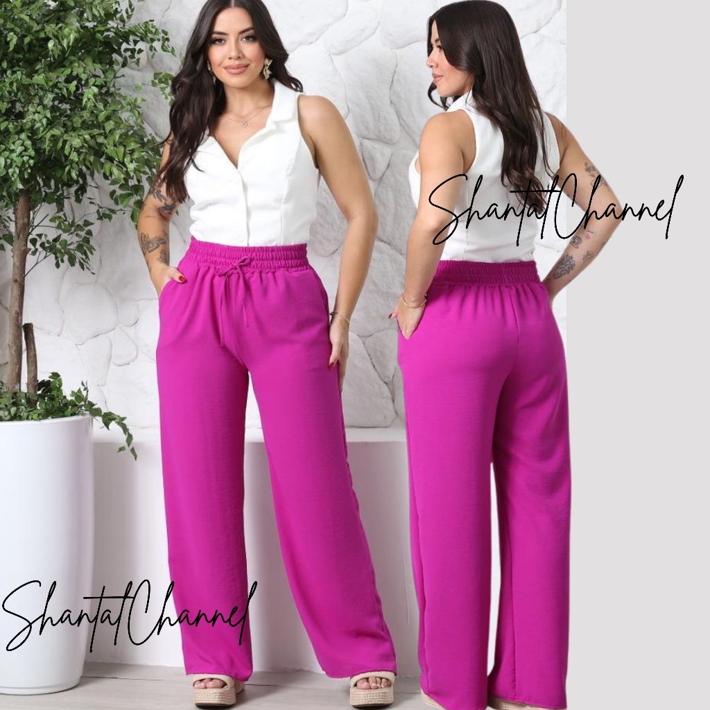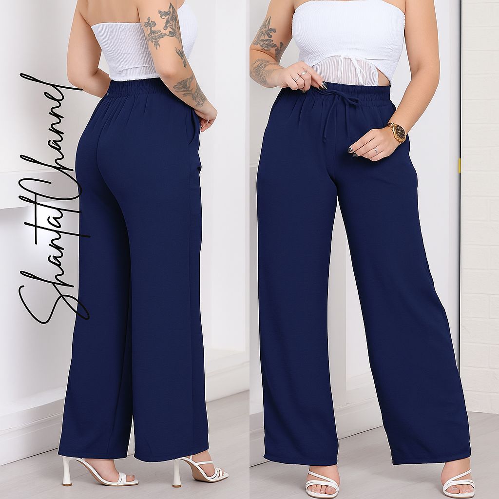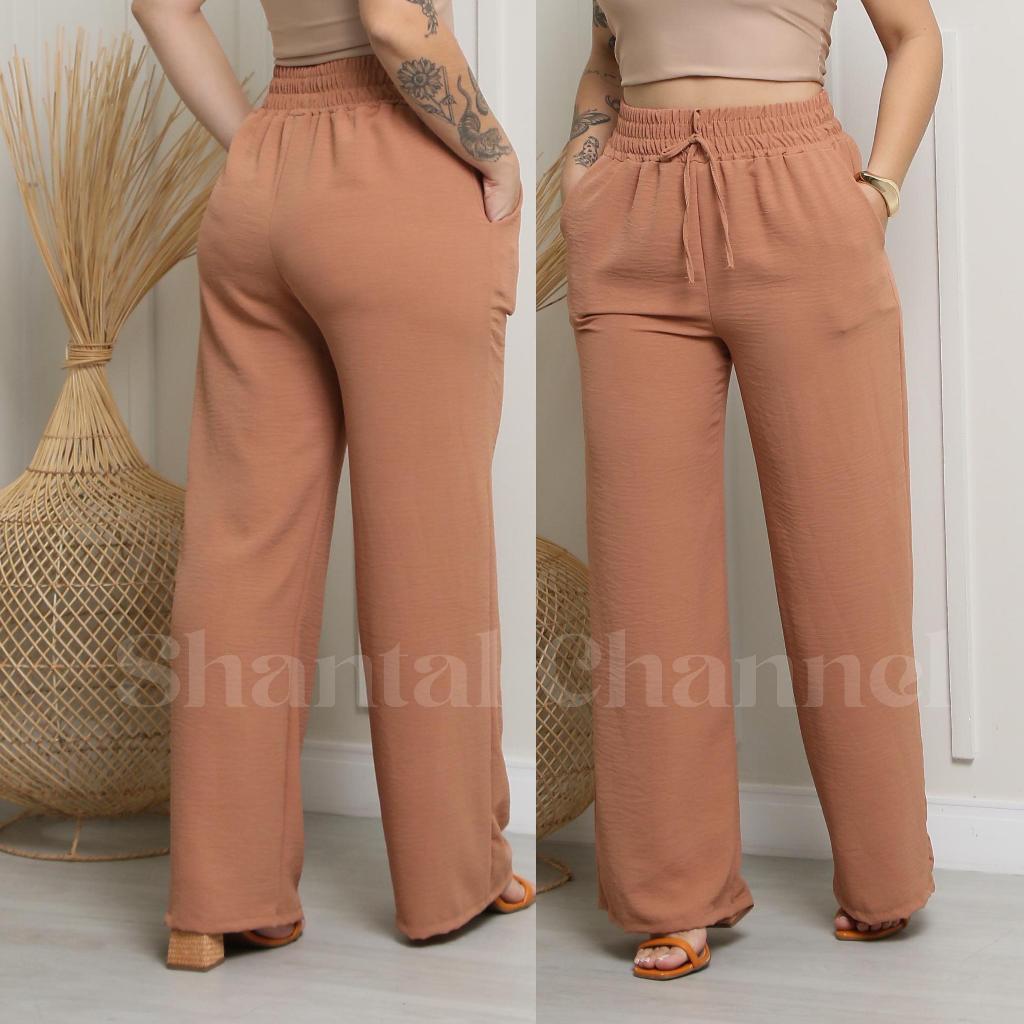 Calça Pantalona Feminina Cintura Alta Com Bolso Duna Tendência