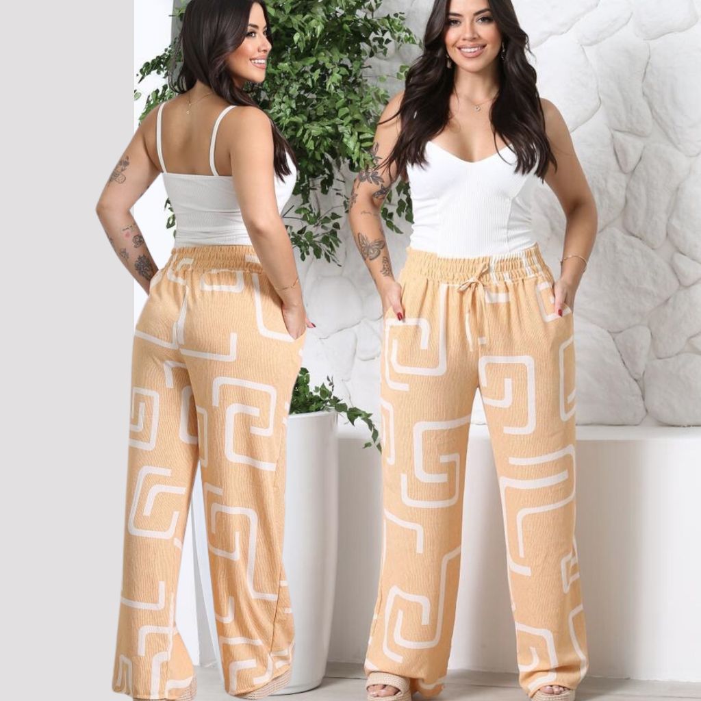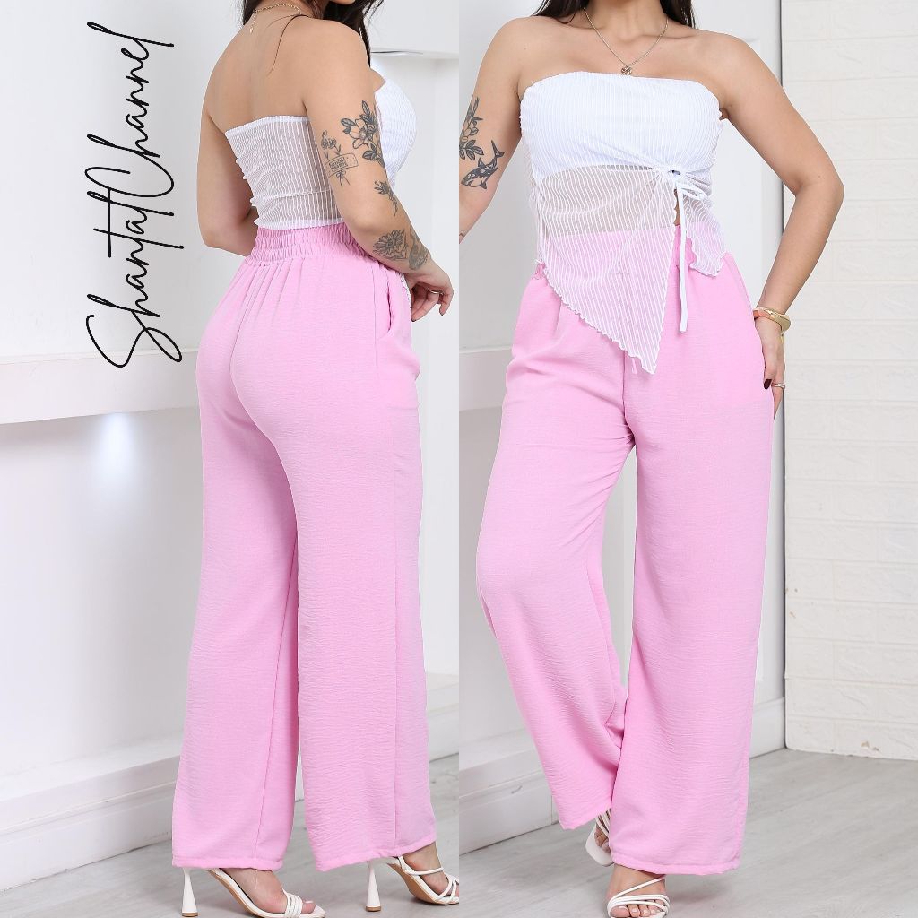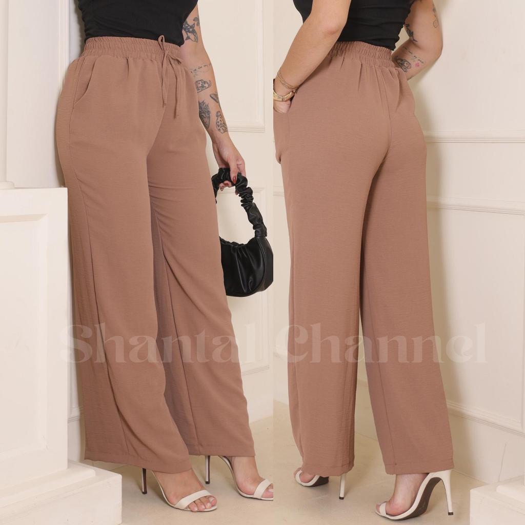 Calça Pantalona Feminina Cintura Alta Com Bolso Duna Tendência