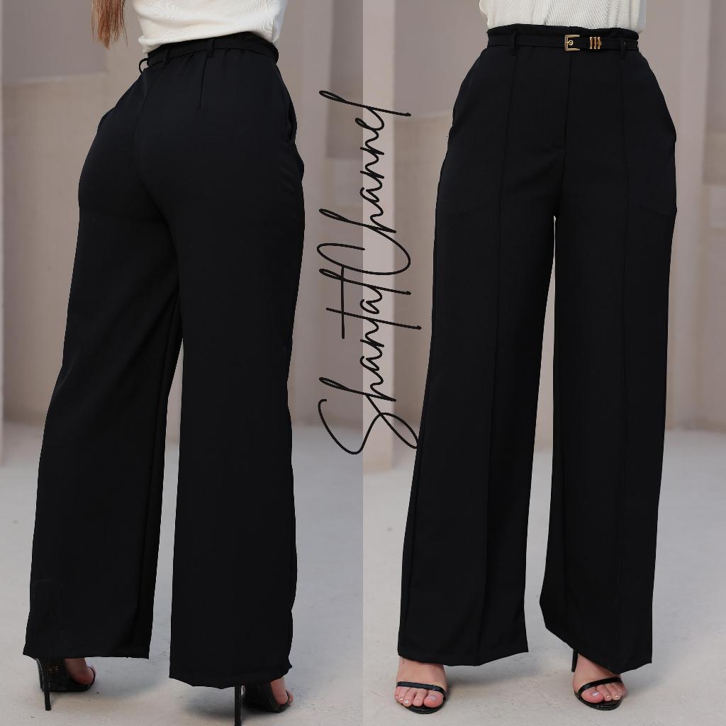 Calça Pantalona Cintura Alta Com cinto e Bolso Luxo e Elegância Promoção