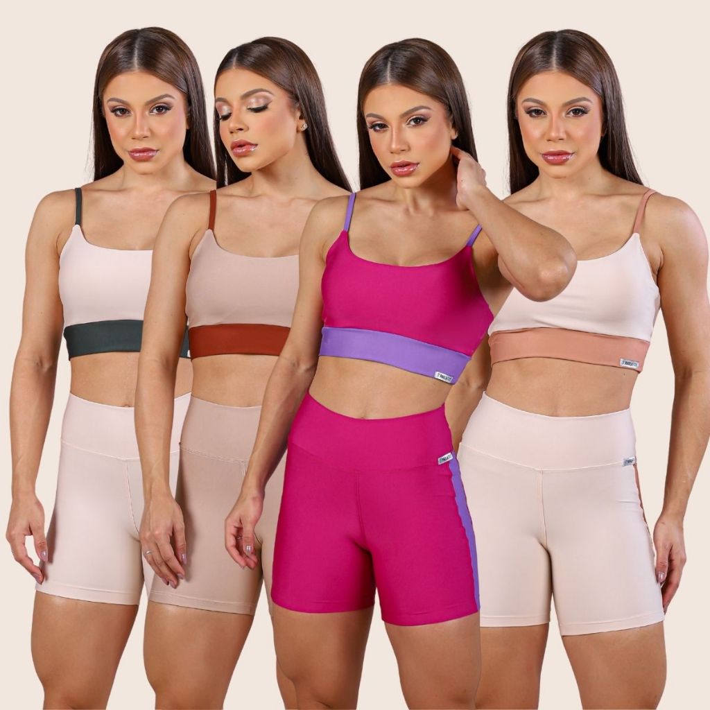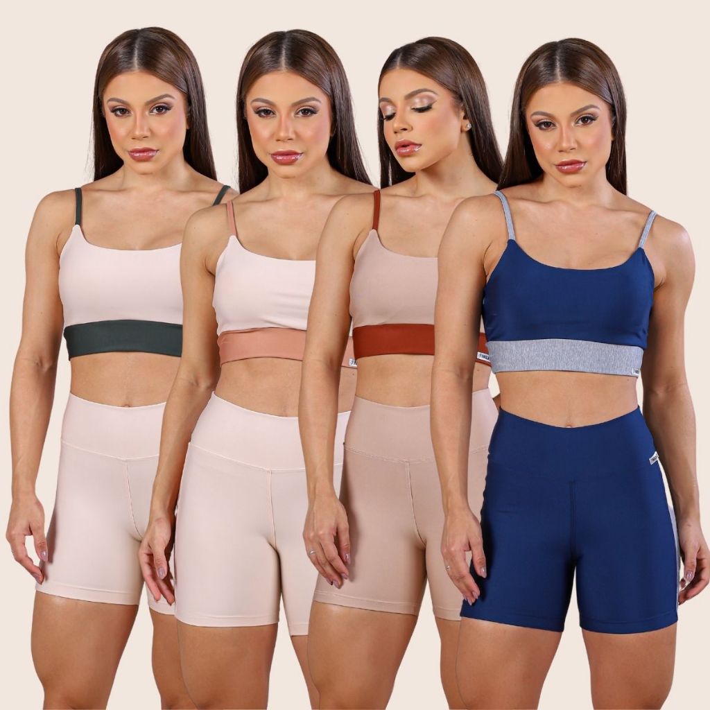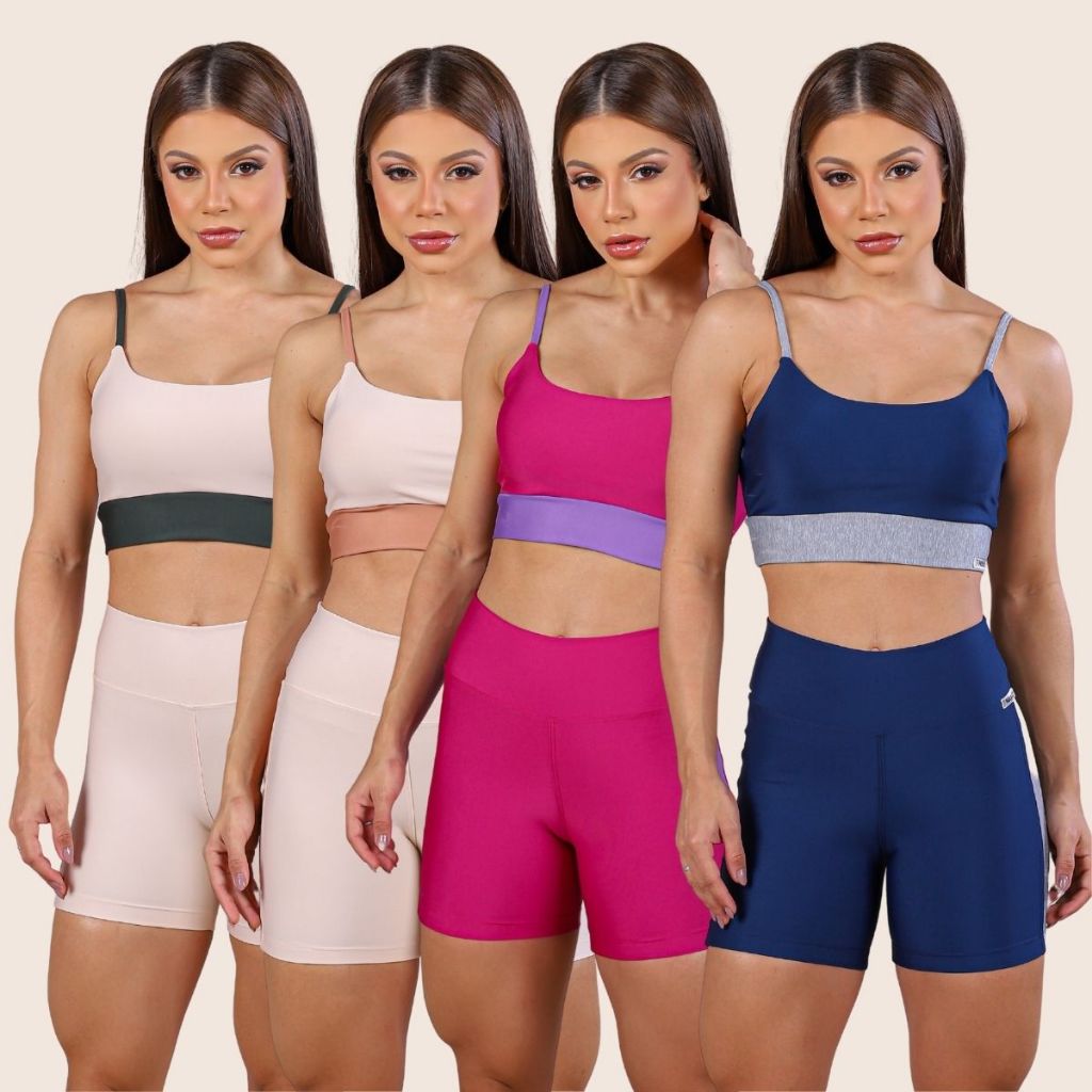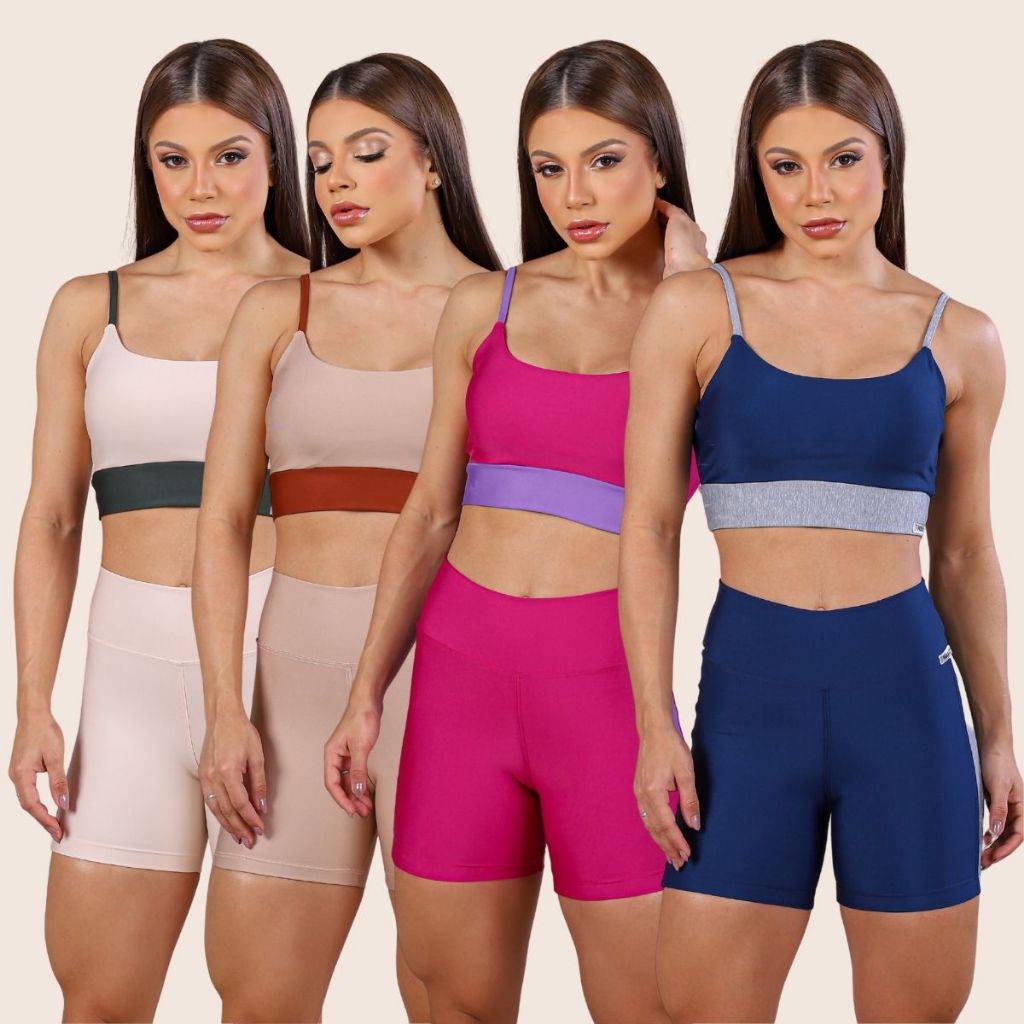 Leve 4 Conjuntos Fitness Curtos Femininos Estilo Conforto Zero Transparência