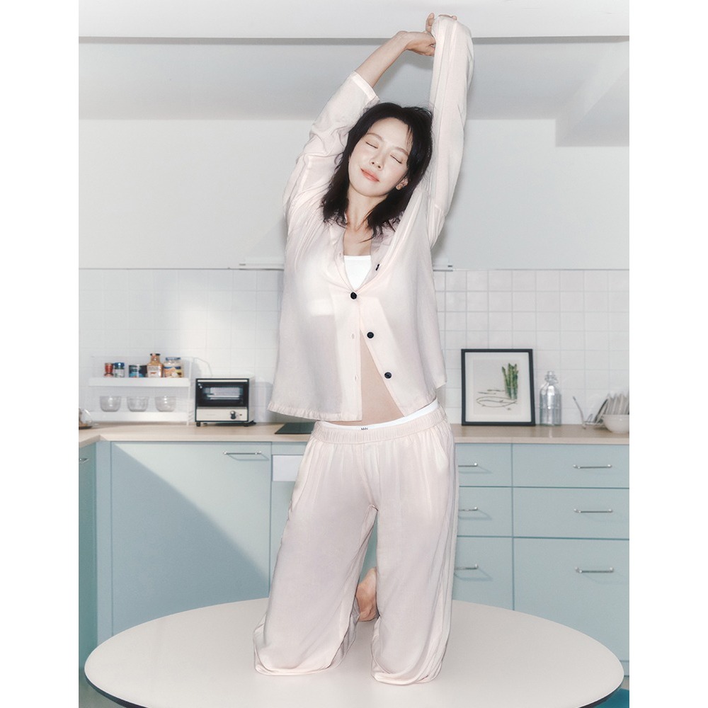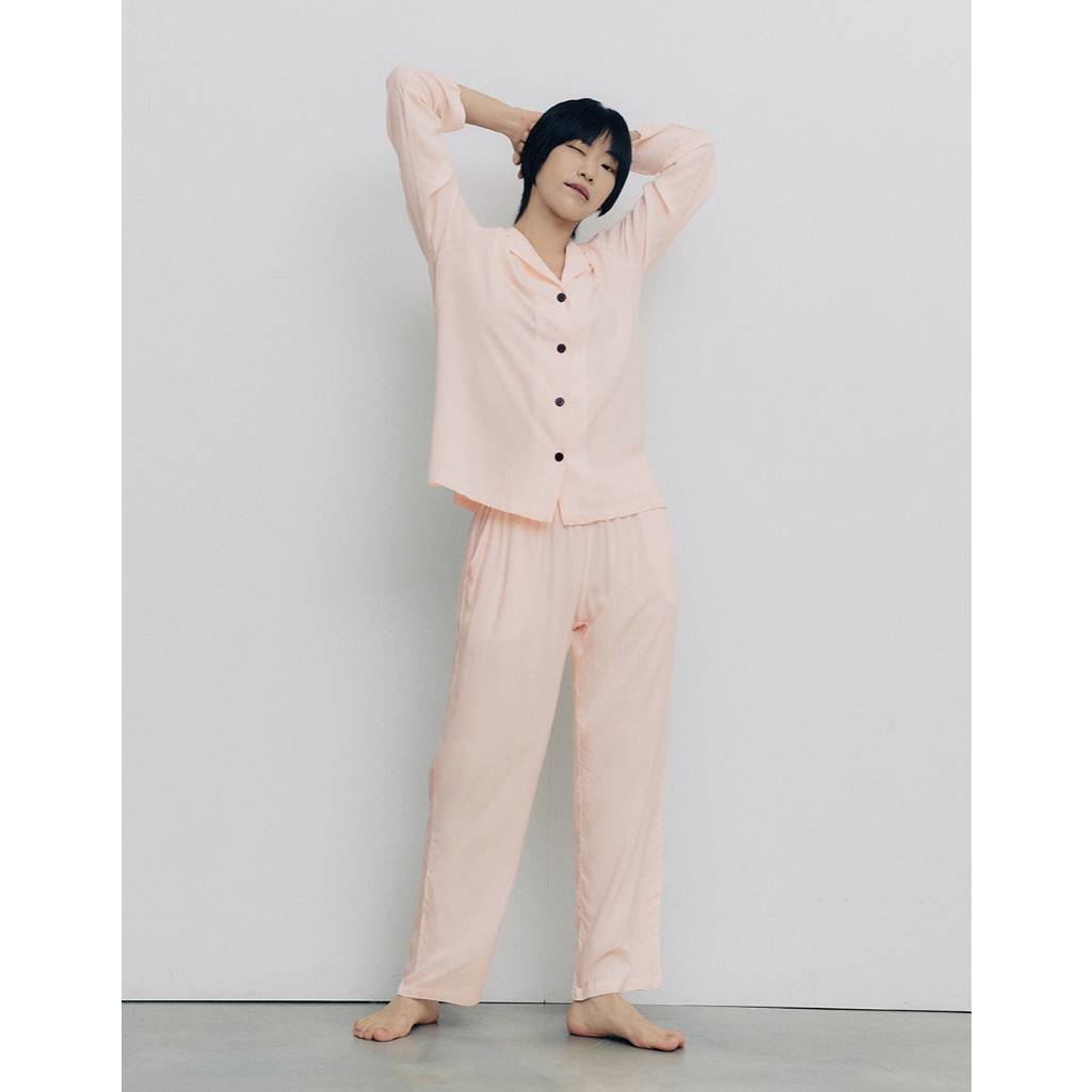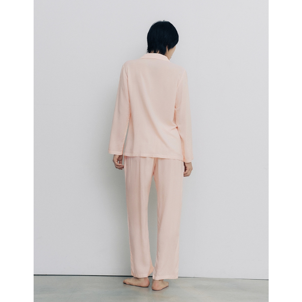 Ninassong Conjunto De Pijama Longo Casual Com Botão Liso , Roupa De Casa Para Mulheres , Manga Comprida , Calças Compridas Dormir