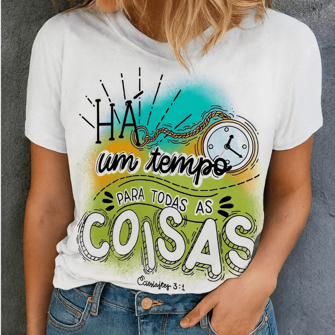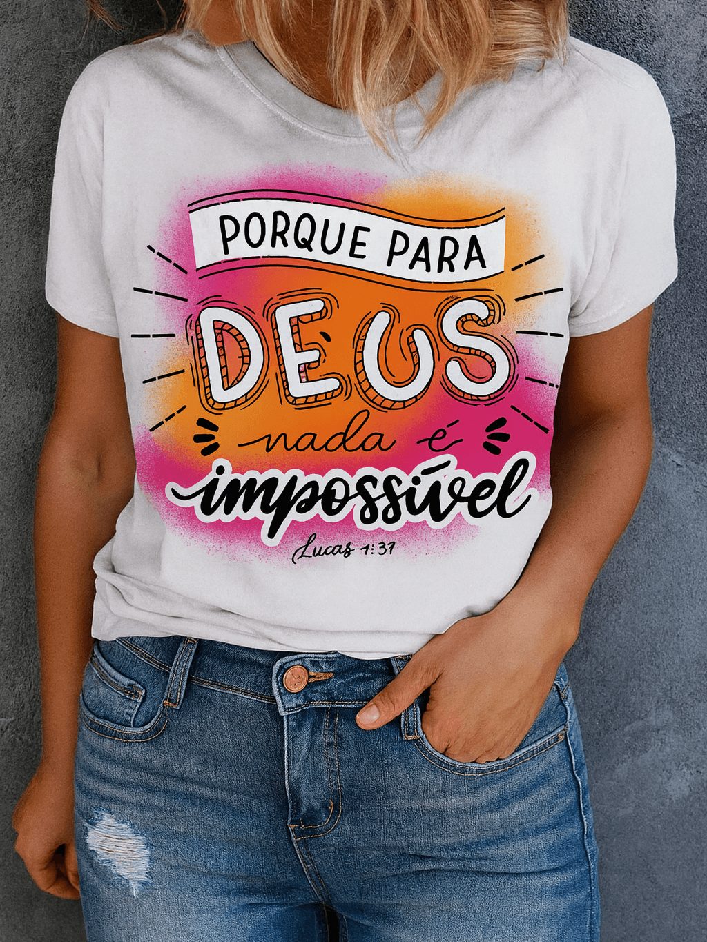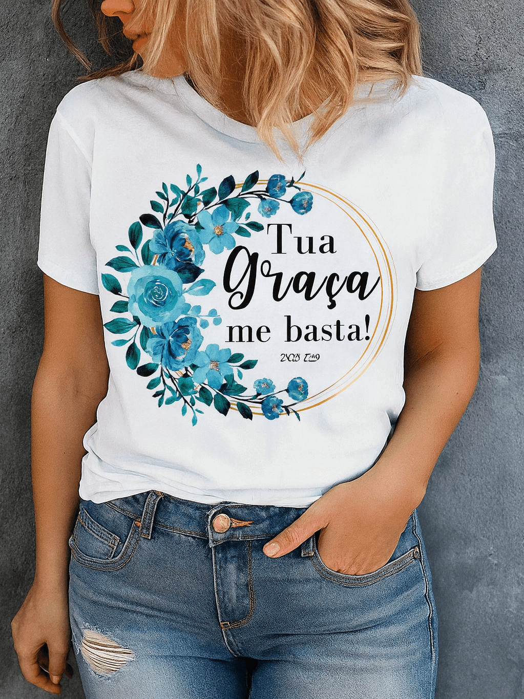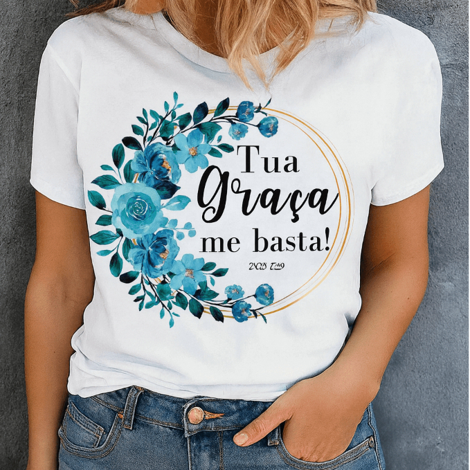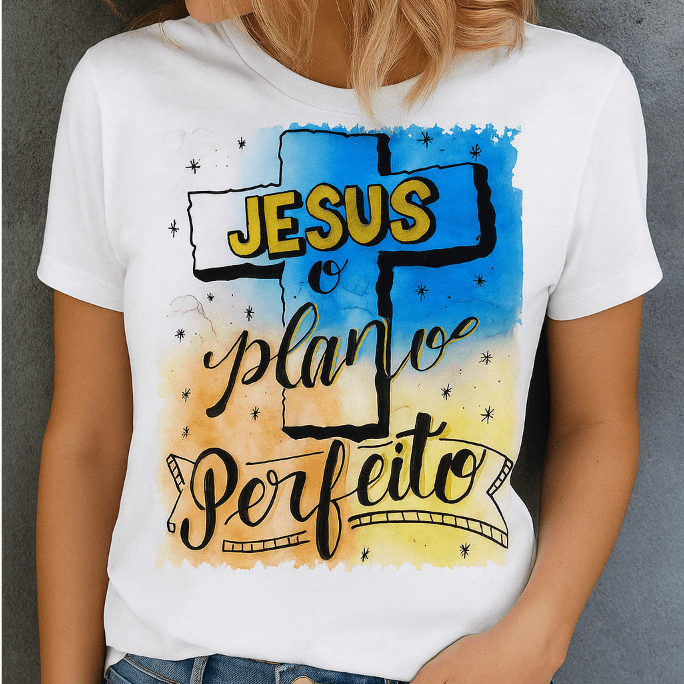 T-SHIRT BRANCA RELIGIOSA FEMININA CONFORT COM MANGA CURTA BLUSA CAMISETA BABY LOOK ESTAMPADA