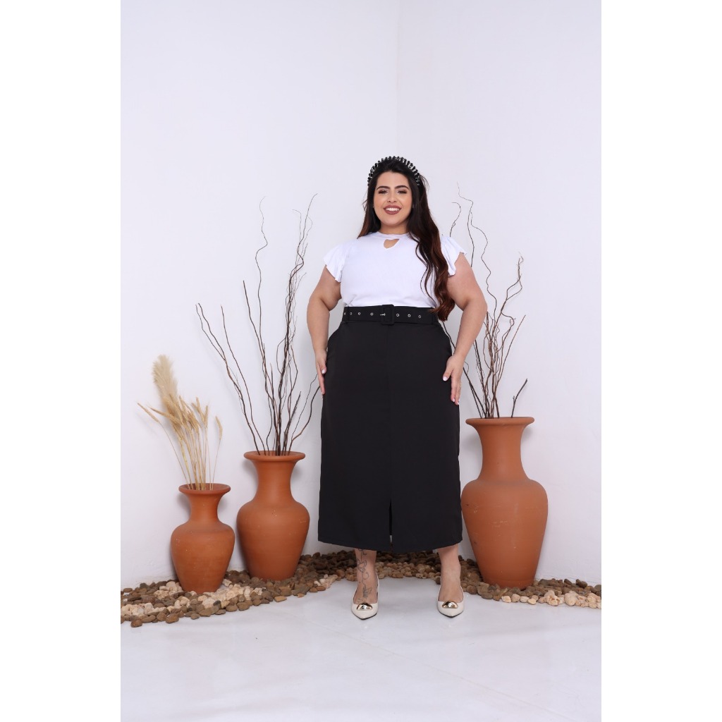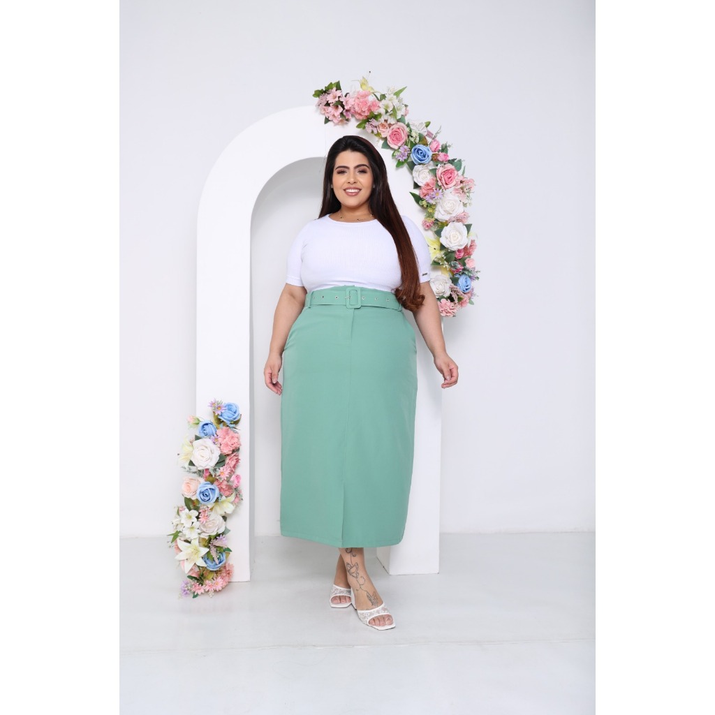 SAIA MIDI PLUS SIZE ALFAIATARIA MODA EVANGELICA REF 051