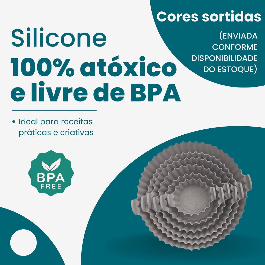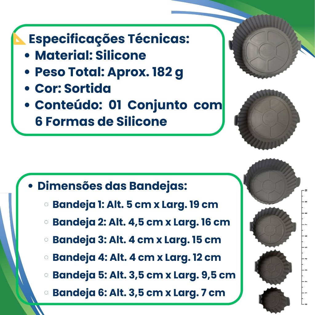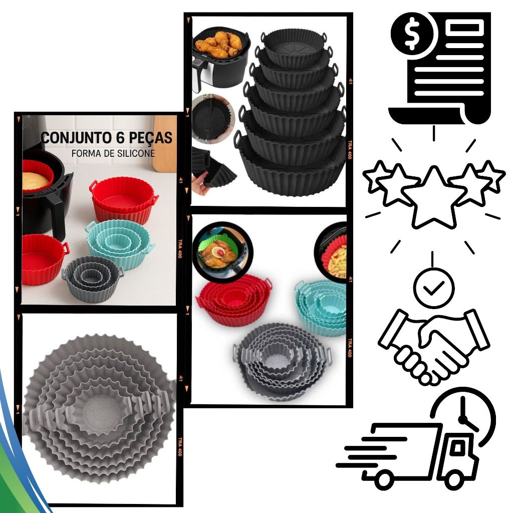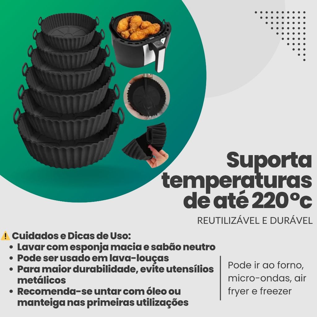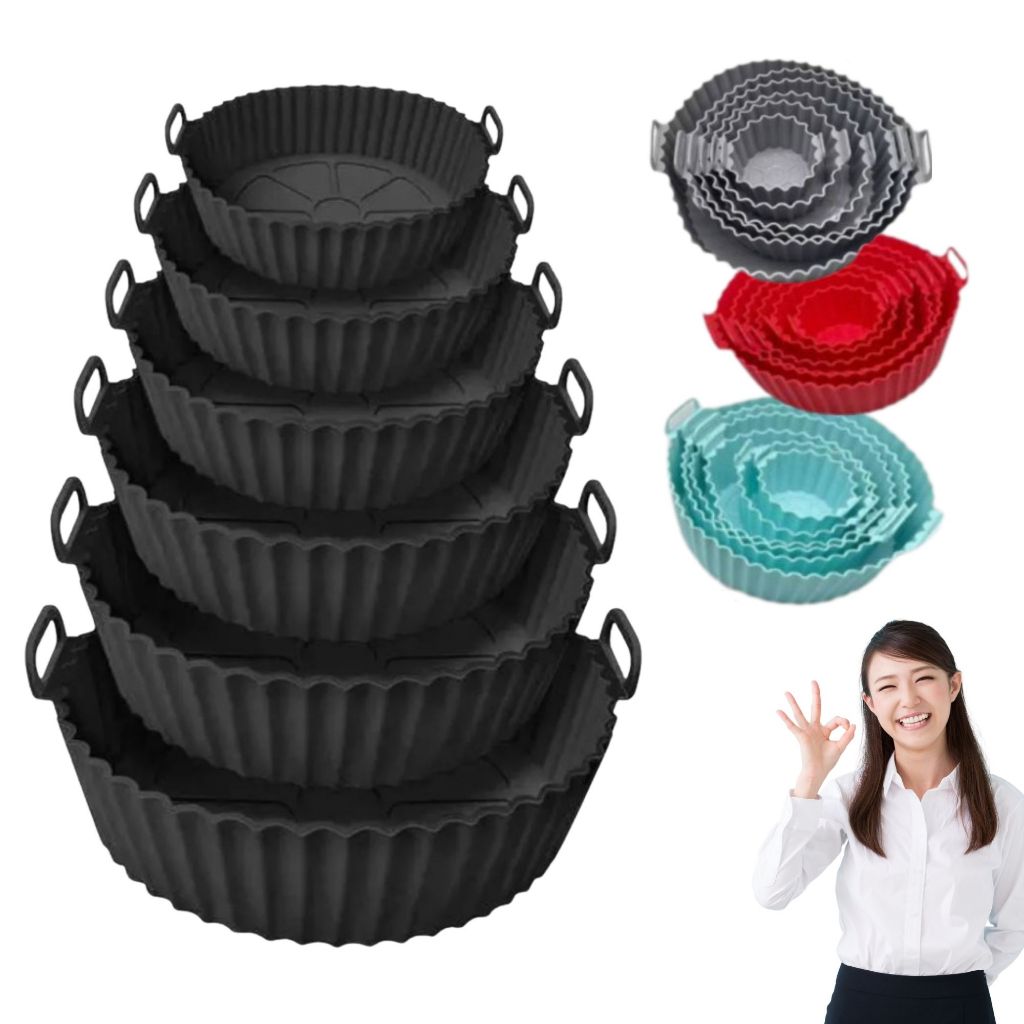 Kit 6 Formas De Silicone Para AirFryer Forno Microondas Fritadeira Assadeira Antiaderente com Alça