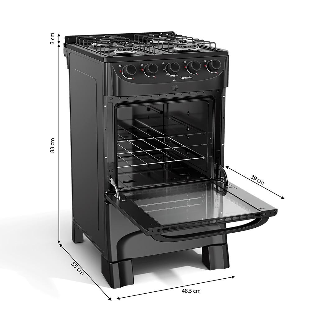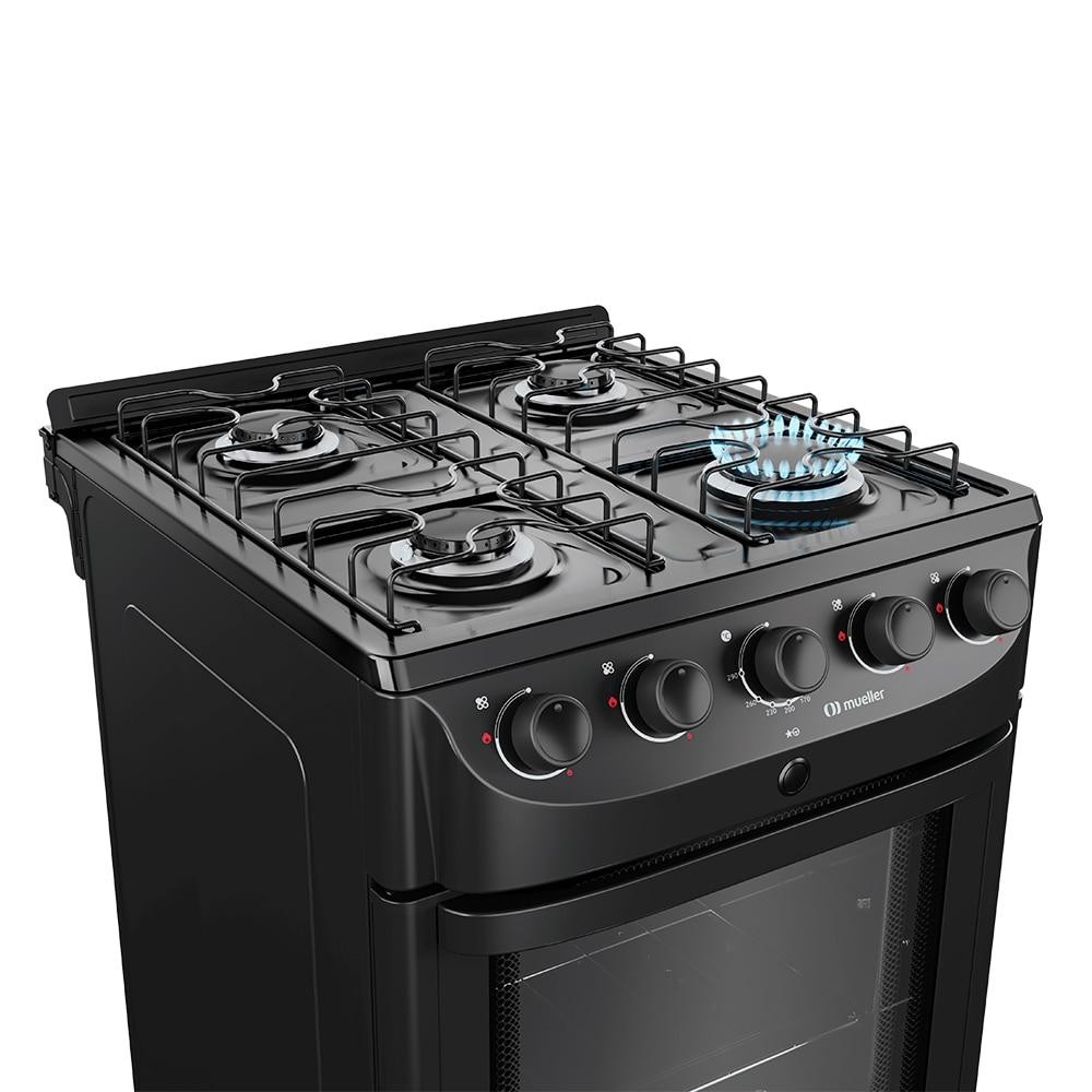 Fogão Mueller MFI4BC Preto Fosco 4 Bocas Bivolt Acendimento Automático Design Moderno