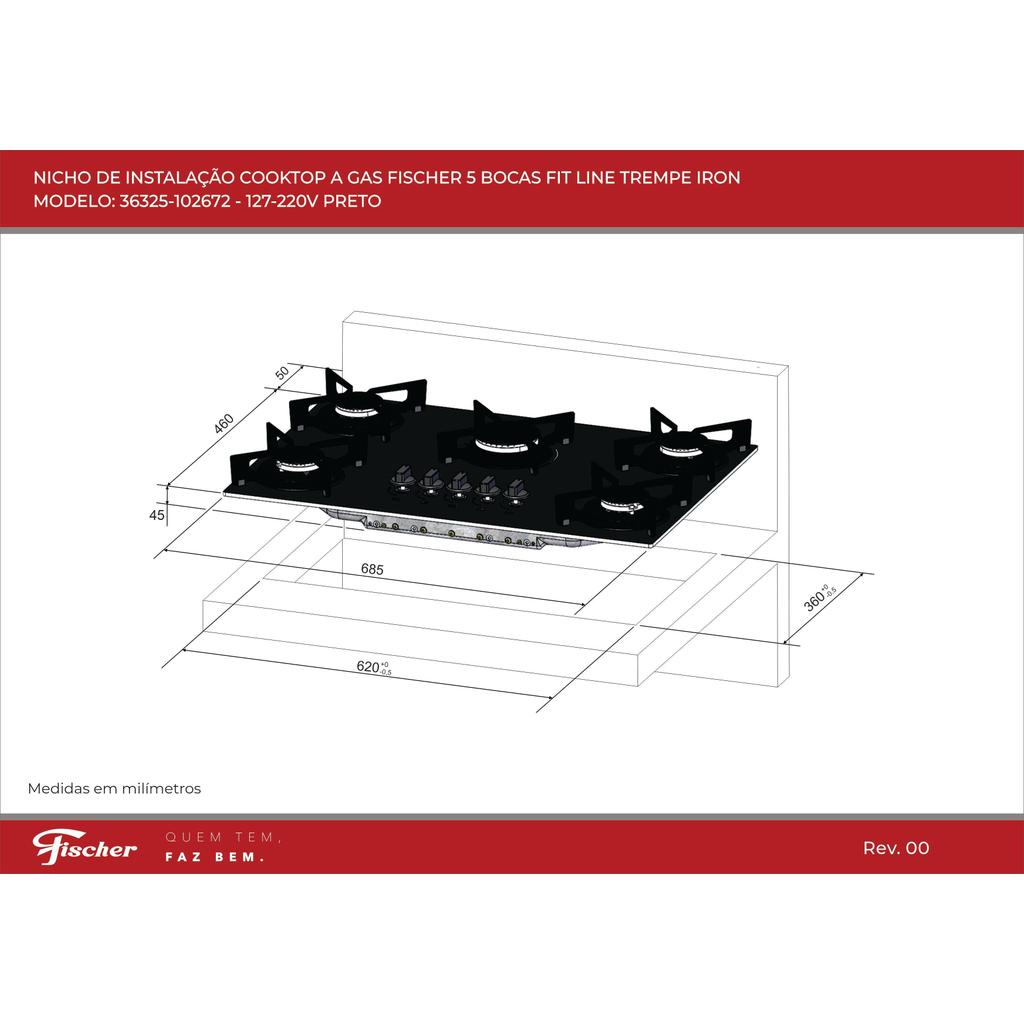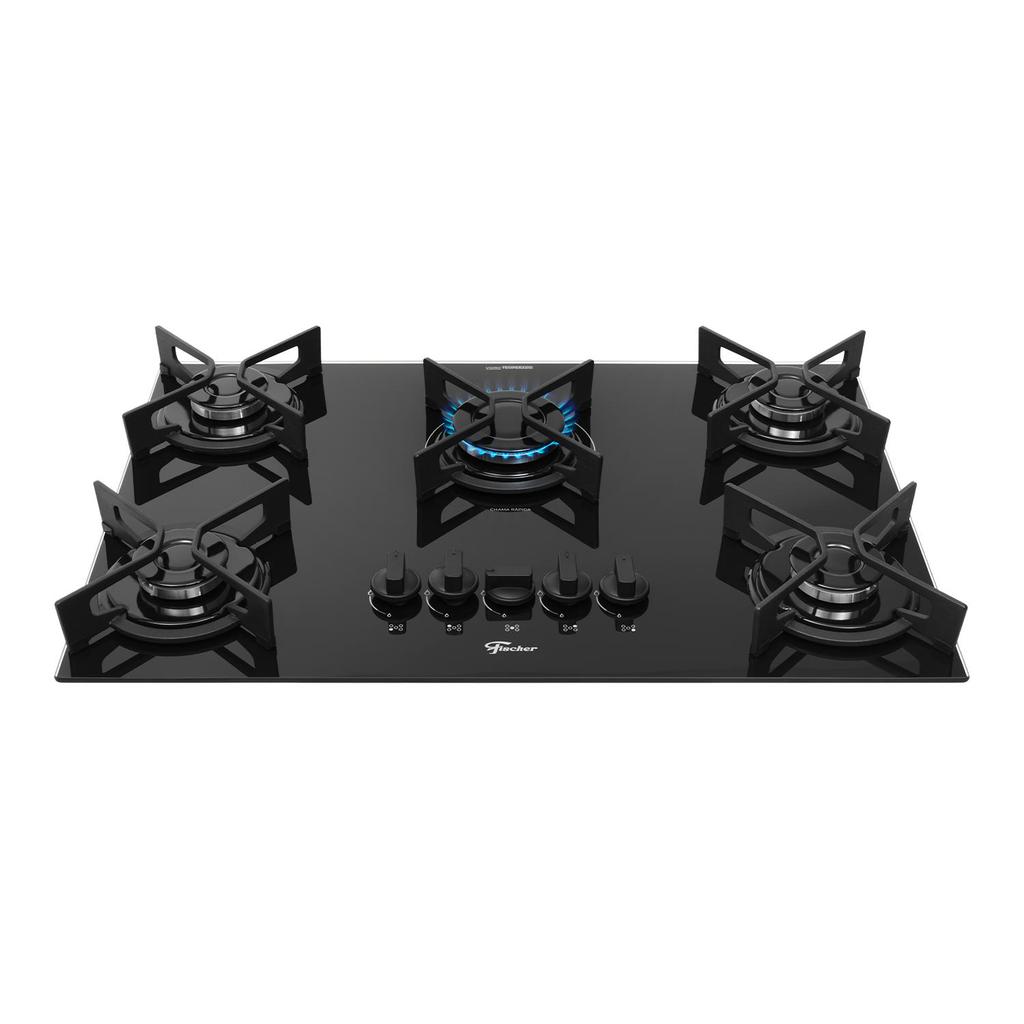 Cooktop Fischer Fit 5 Bocas Preto Bivolt Eficiente e Moderno com Grades de Ferro Resistente