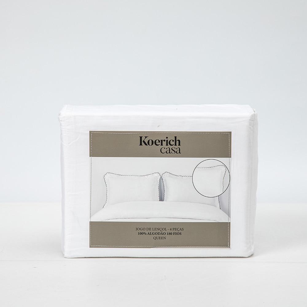 Jogo Lençol 4 Peças Queen Branco/Cinza - Koerich Casa