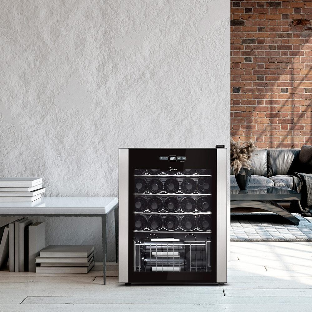 Adega Midea WBB242 Preta 24 Garrafas Compressor Climatizada Vinhos Perfeitos Design Moderno