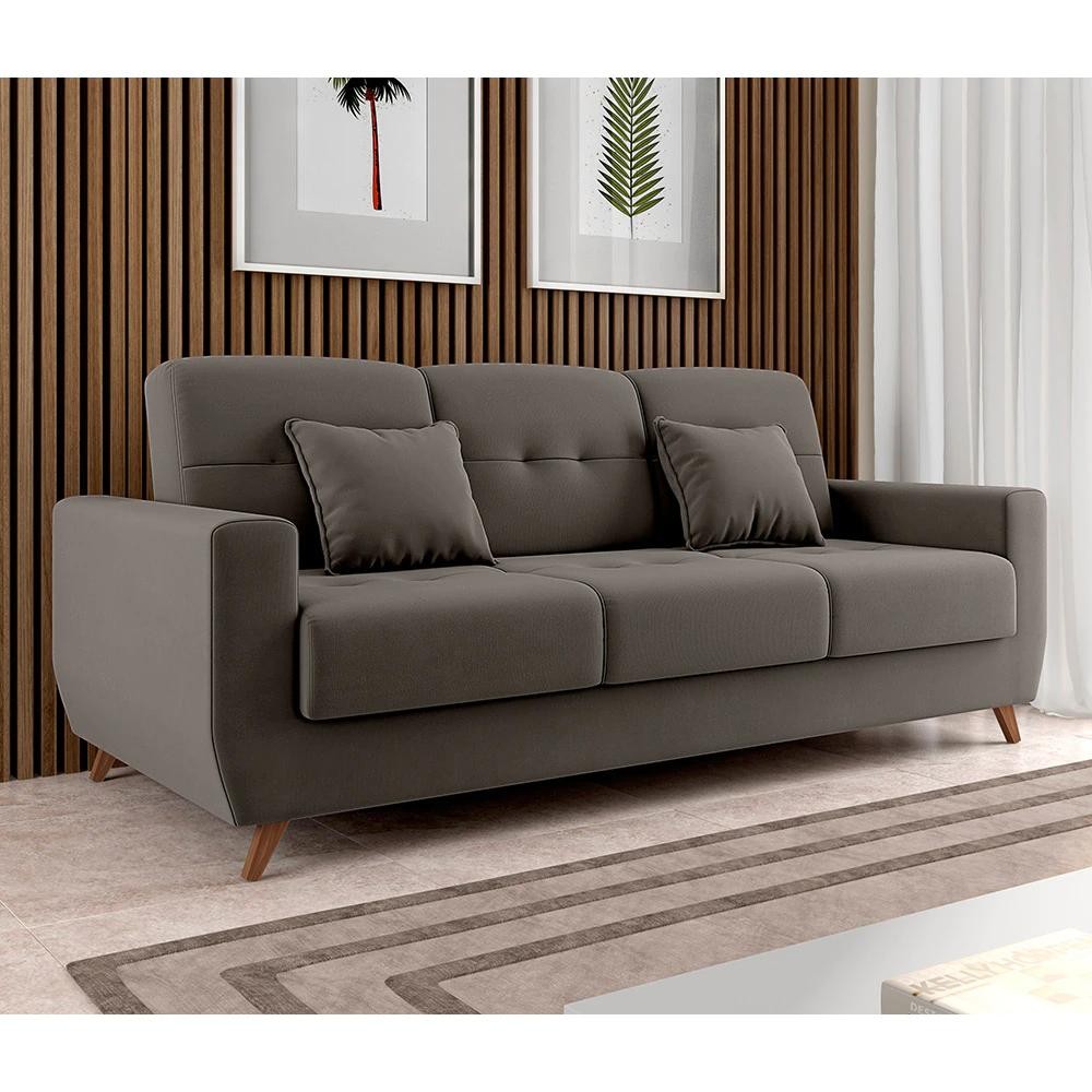 Sofá Cama Matrix Pamela Veludo Cinza Baú 208cm Conforto Moderno Otimiza Espaço