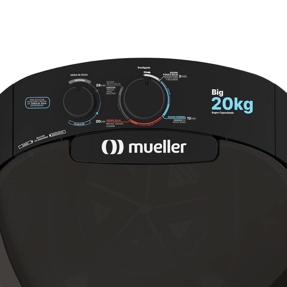 Máquina de Lavar Mueller 20kg Big Preta 220V Tanquinho Grande Econômico Filtro Fiapos