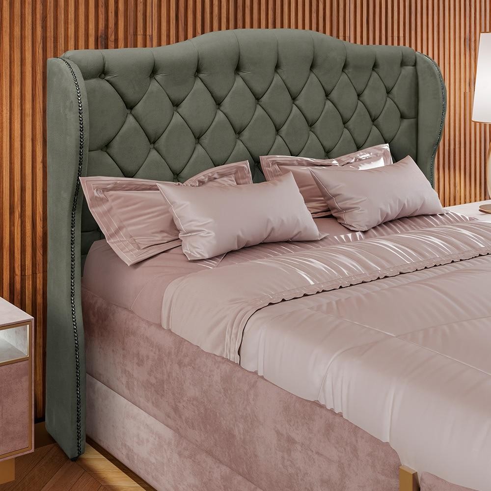 Cabeceira Orquídea Veludo Amêndoa Casal Conforto Elegância Luxo 140cm Madeira