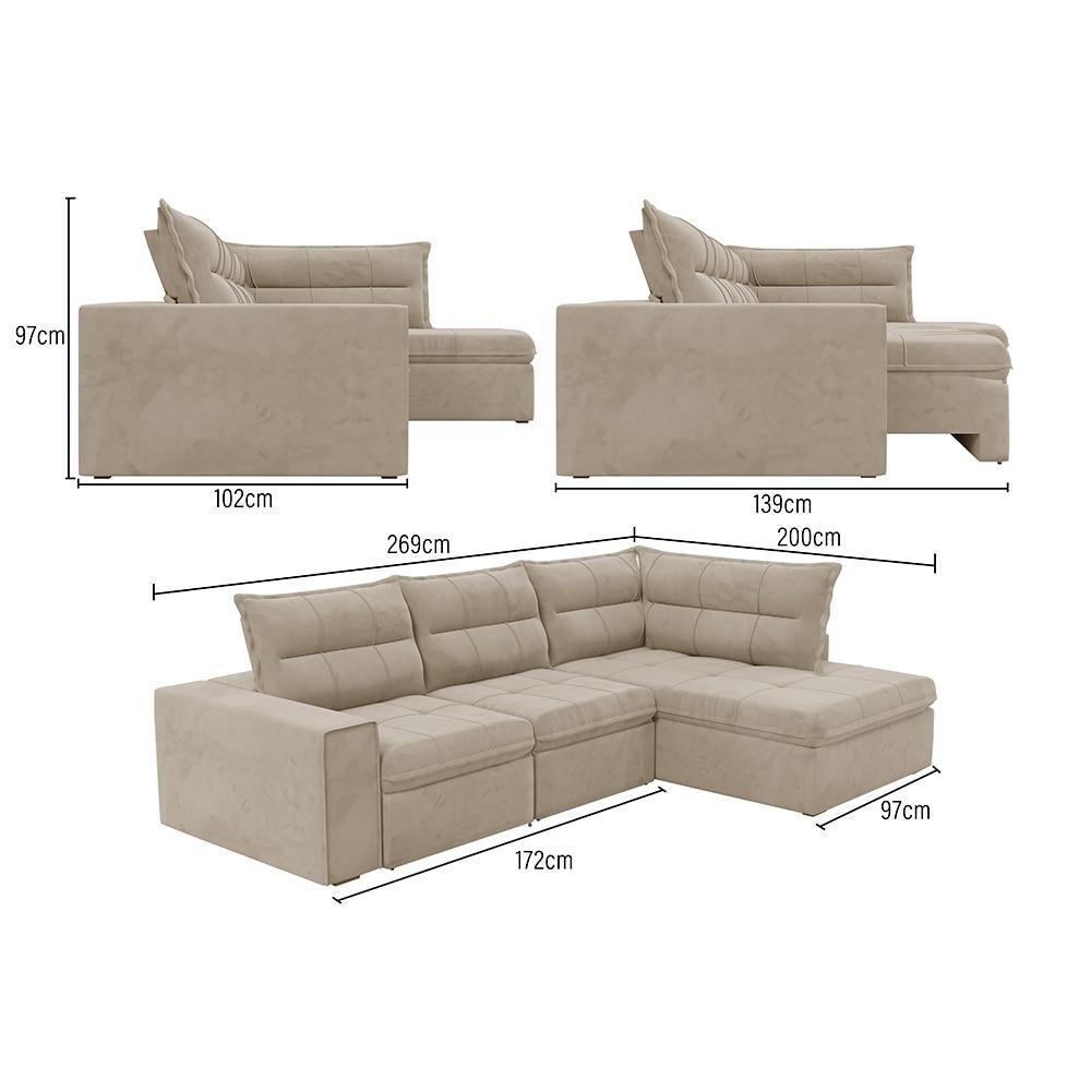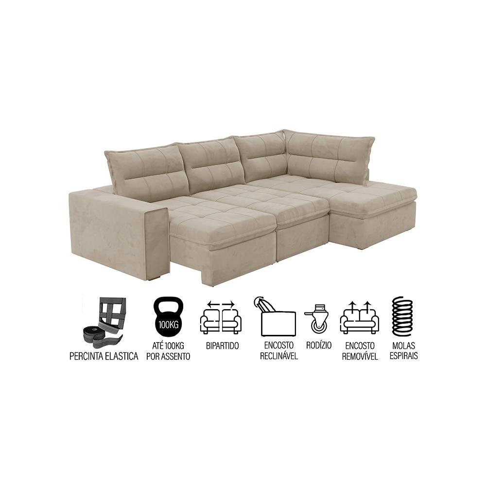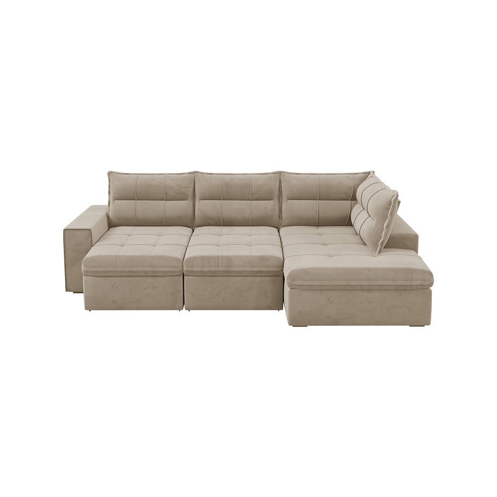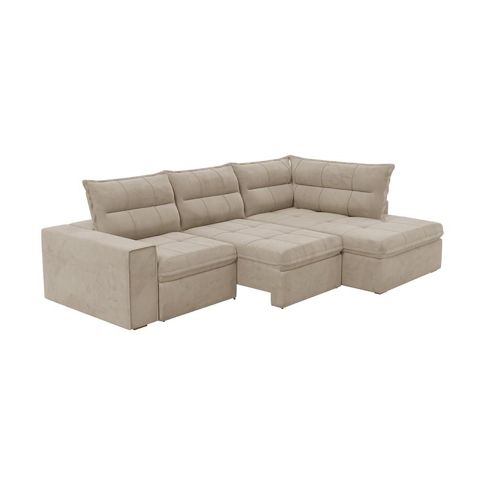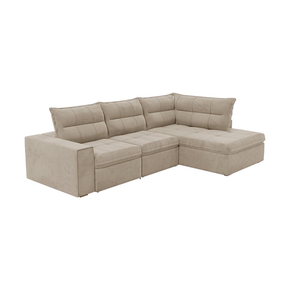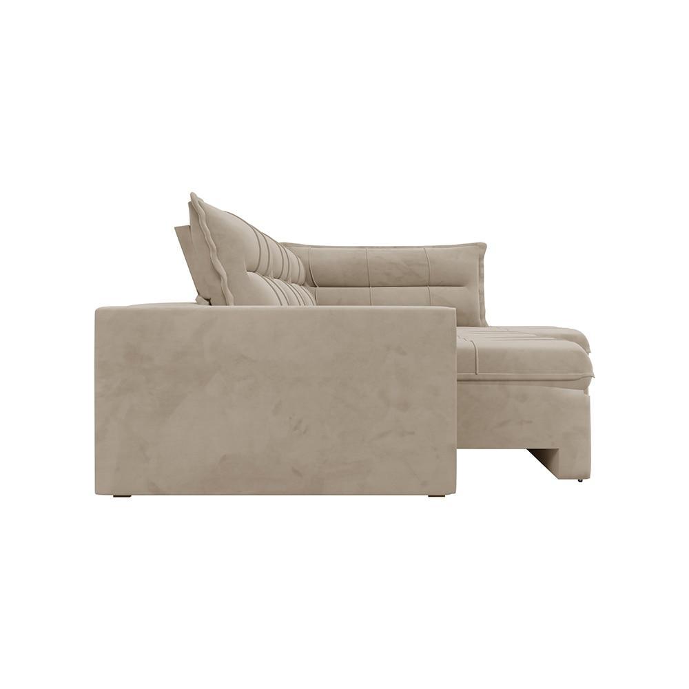 Sofá Retrátil Campus com Chaise 274cm Veludo Bege