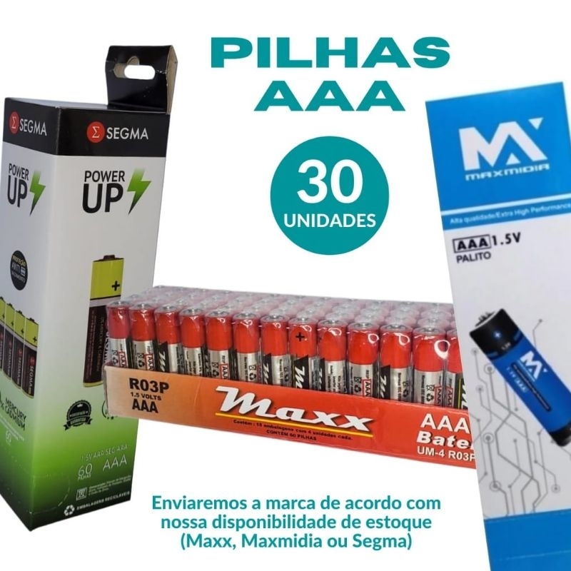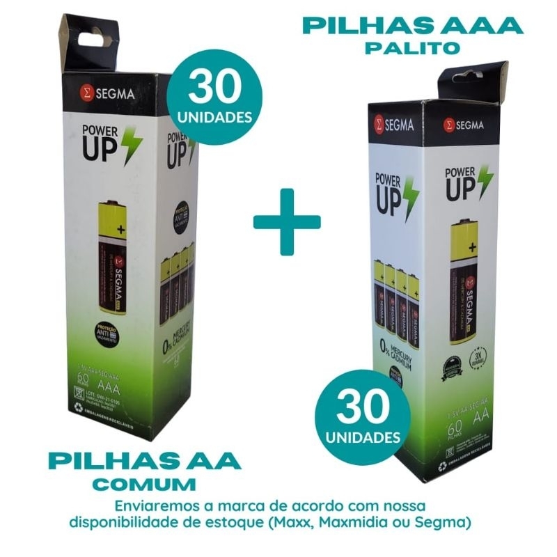 kit 30 pilhas AAA + 30 pilhas AA