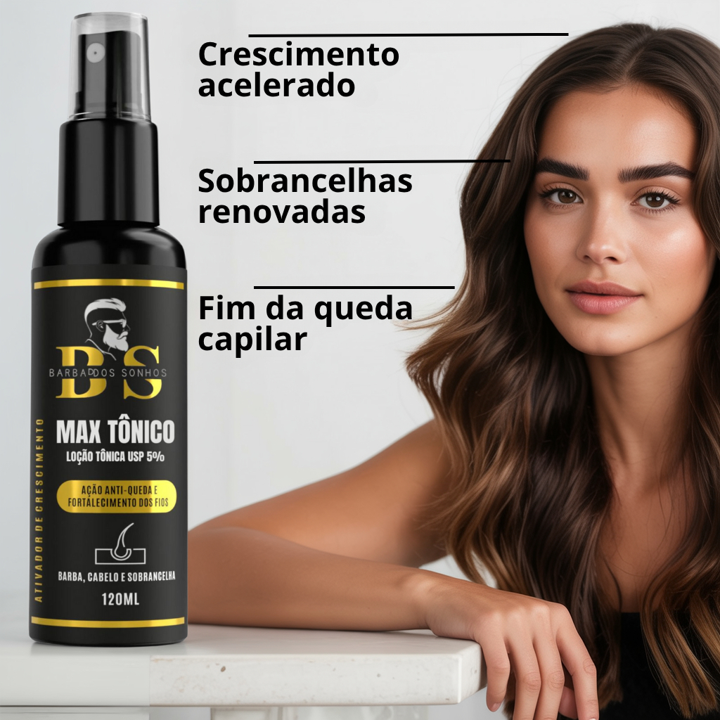 Tônico Capilar Acelerador Crescimento e Antiqueda Cabelo, Barba, Sobrancelha