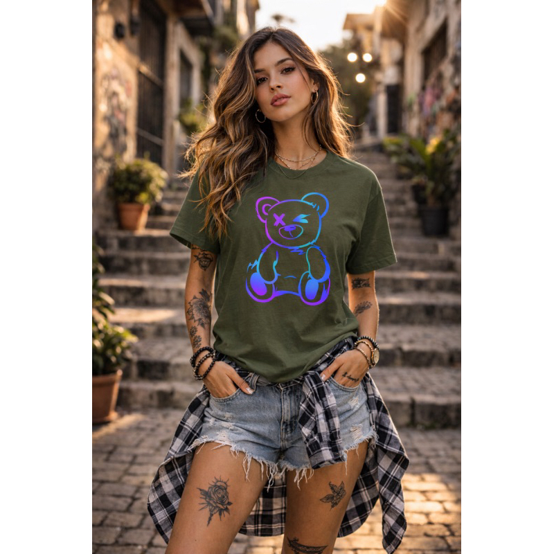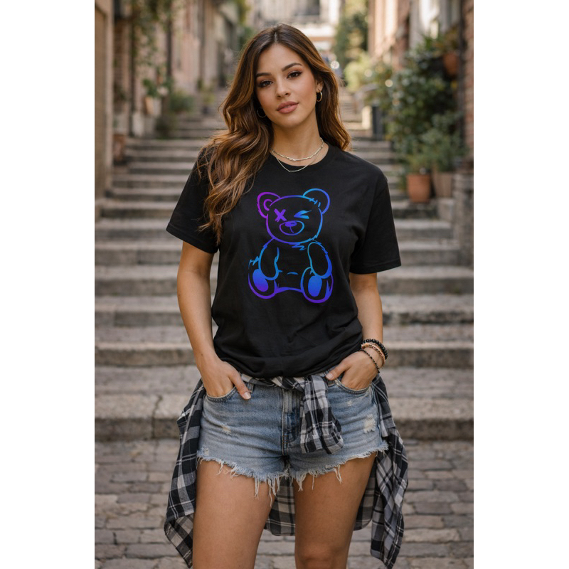 T-Shirt Estampada Urso Neon 100% Algodão Promoção