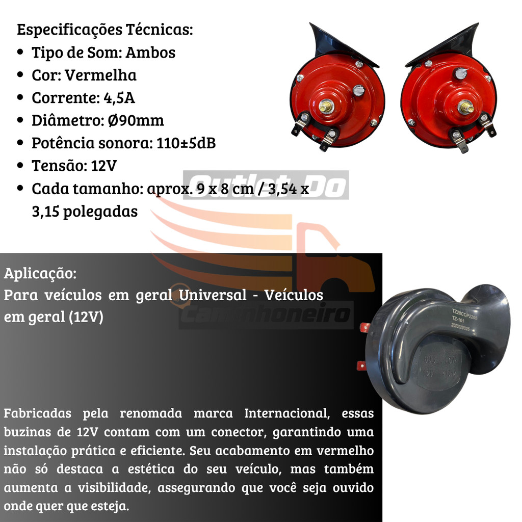 Par de Buzinas Ar Caracol Vermelha Moto Carro Van Barco 110db