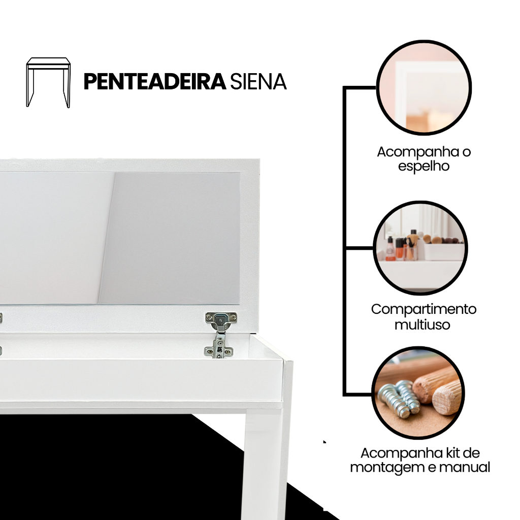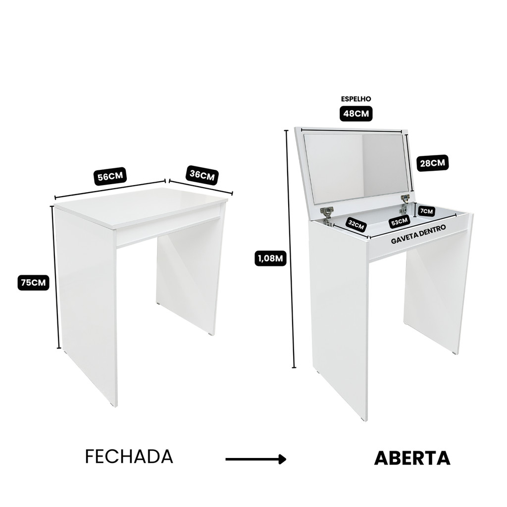 Penteadeira Com Espelho Para Quarto Multiuso Organizador de Maquiagem