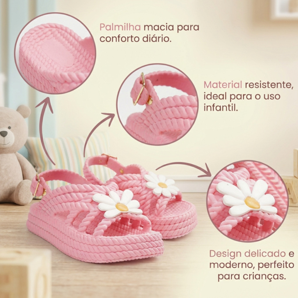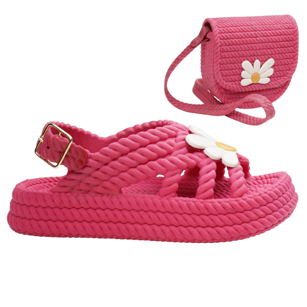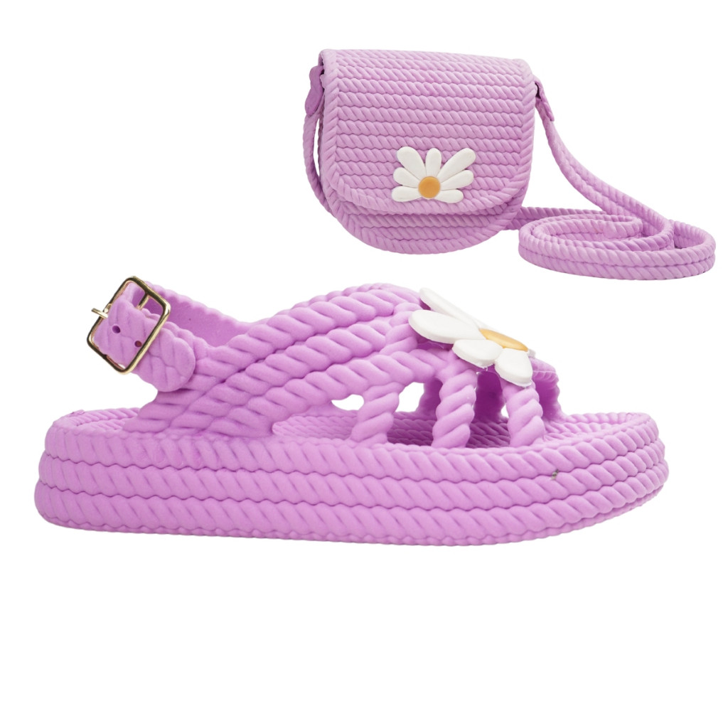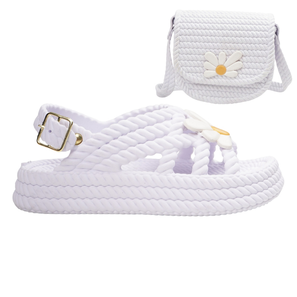 Kit Sandália Infantil Papete Juvenil Confortável + Bolsa com Trança Margarida