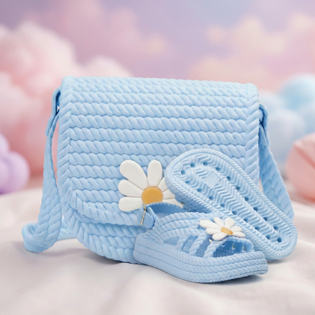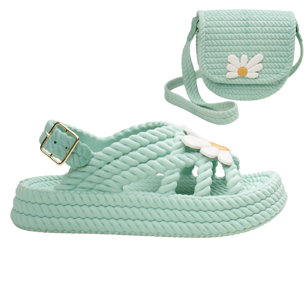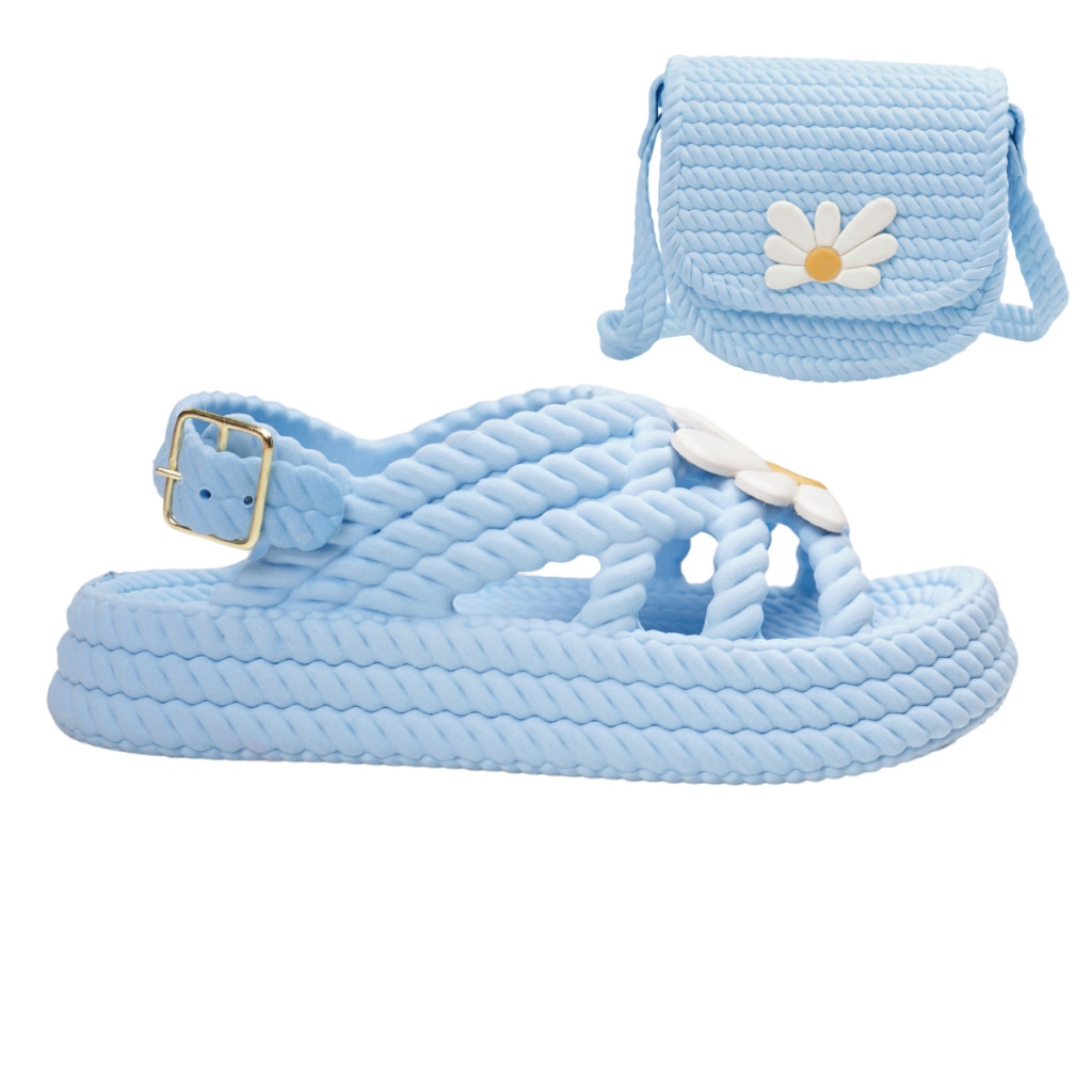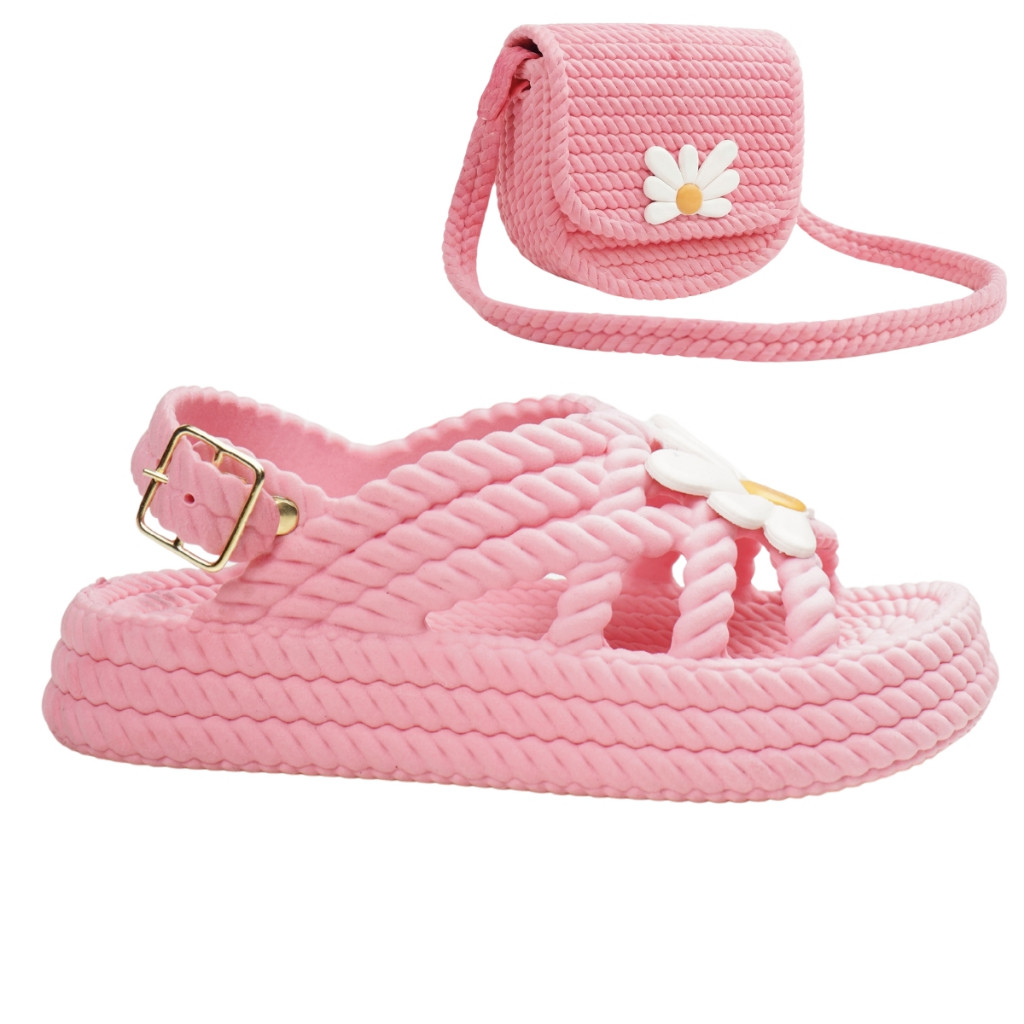 Kit Sandália Infantil Papete Juvenil Confortável + Bolsa com Trança Margarida
