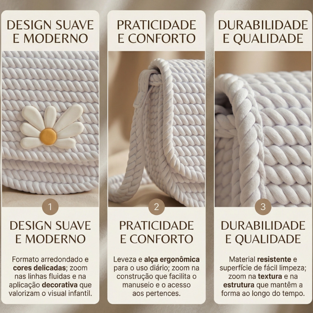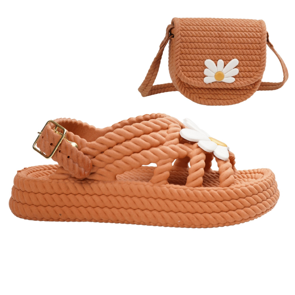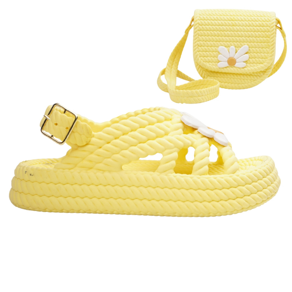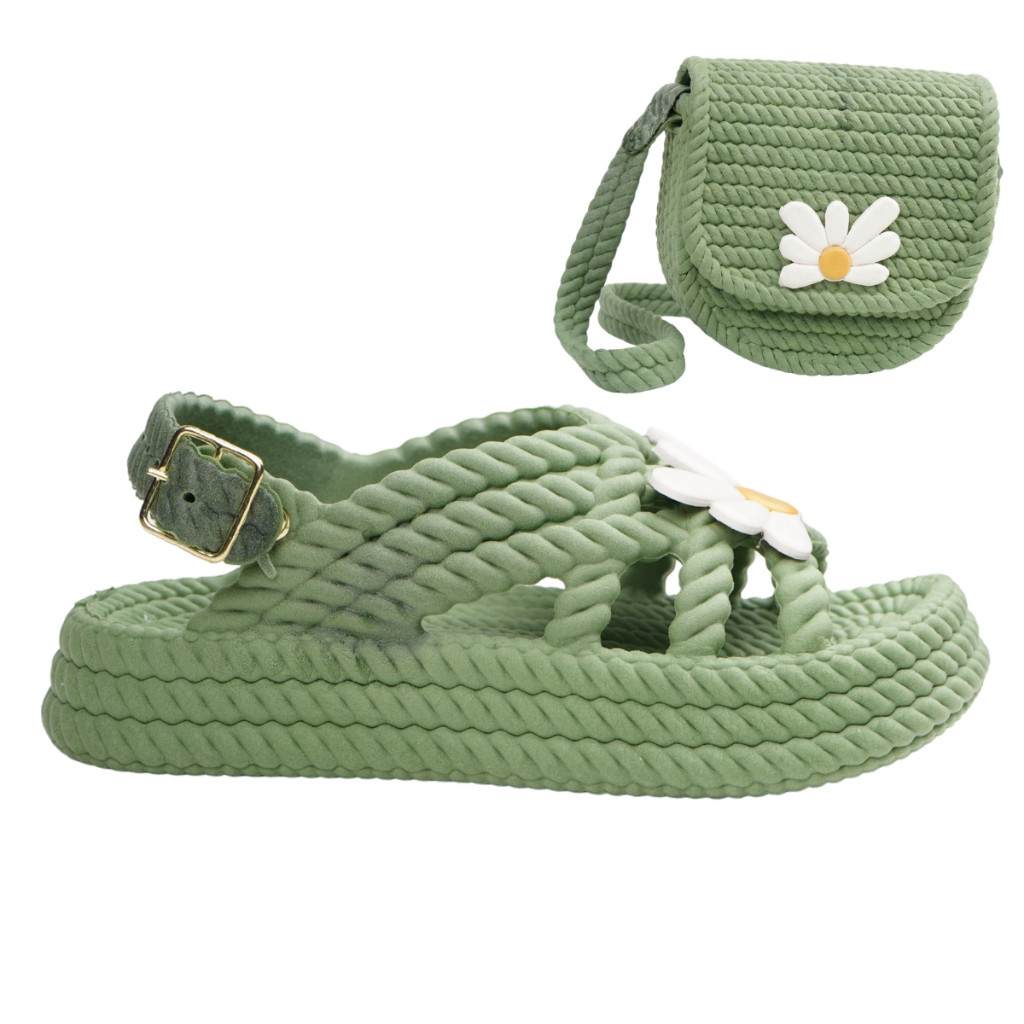 Kit Sandália Infantil Papete Juvenil Confortável + Bolsa com Trança Margarida