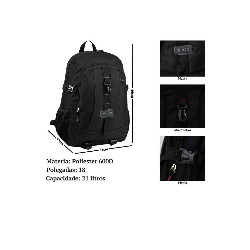 Mochila Masculina R.Vix Preta Grande Resistente 18,5" 20L 8729672